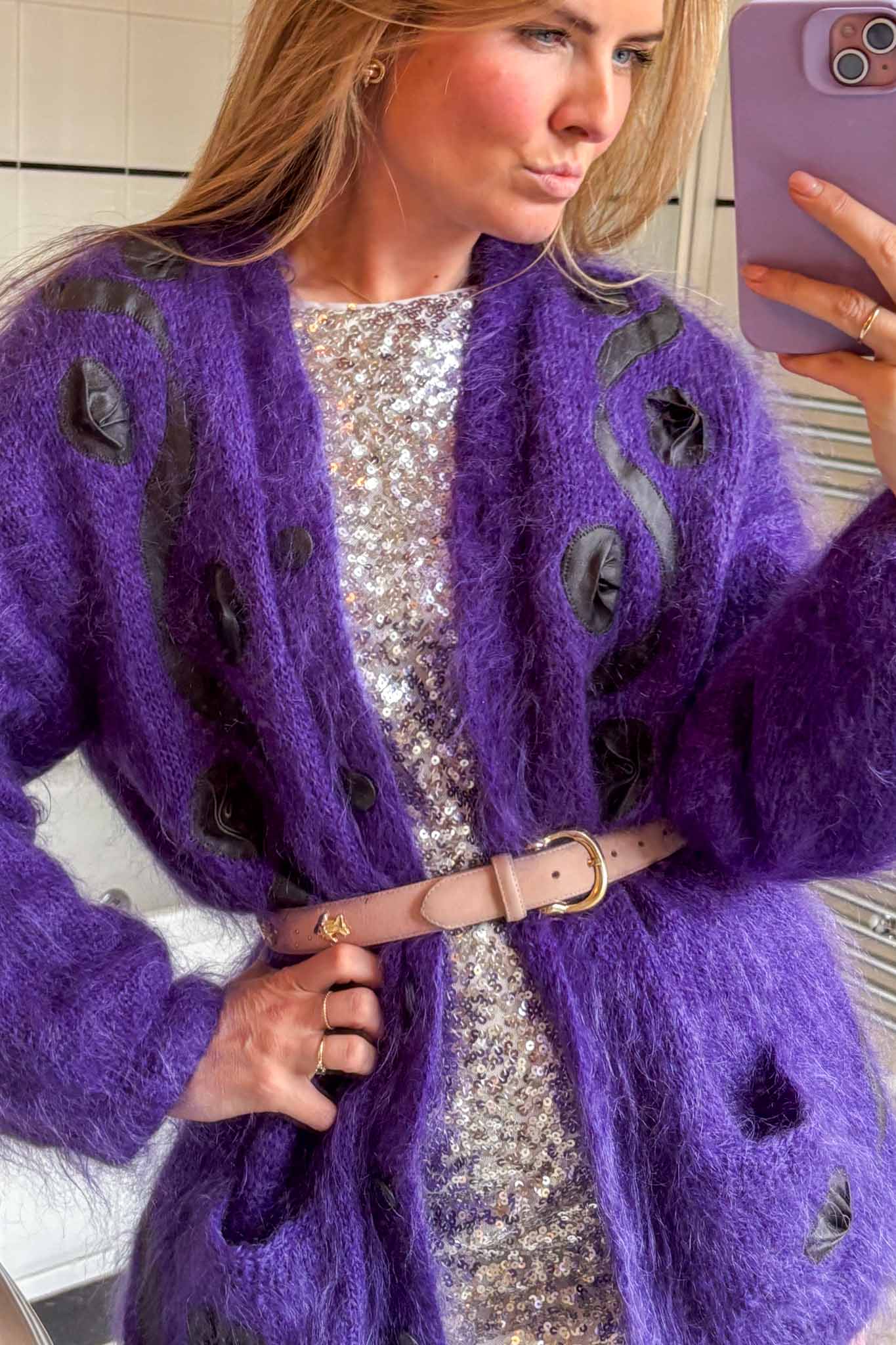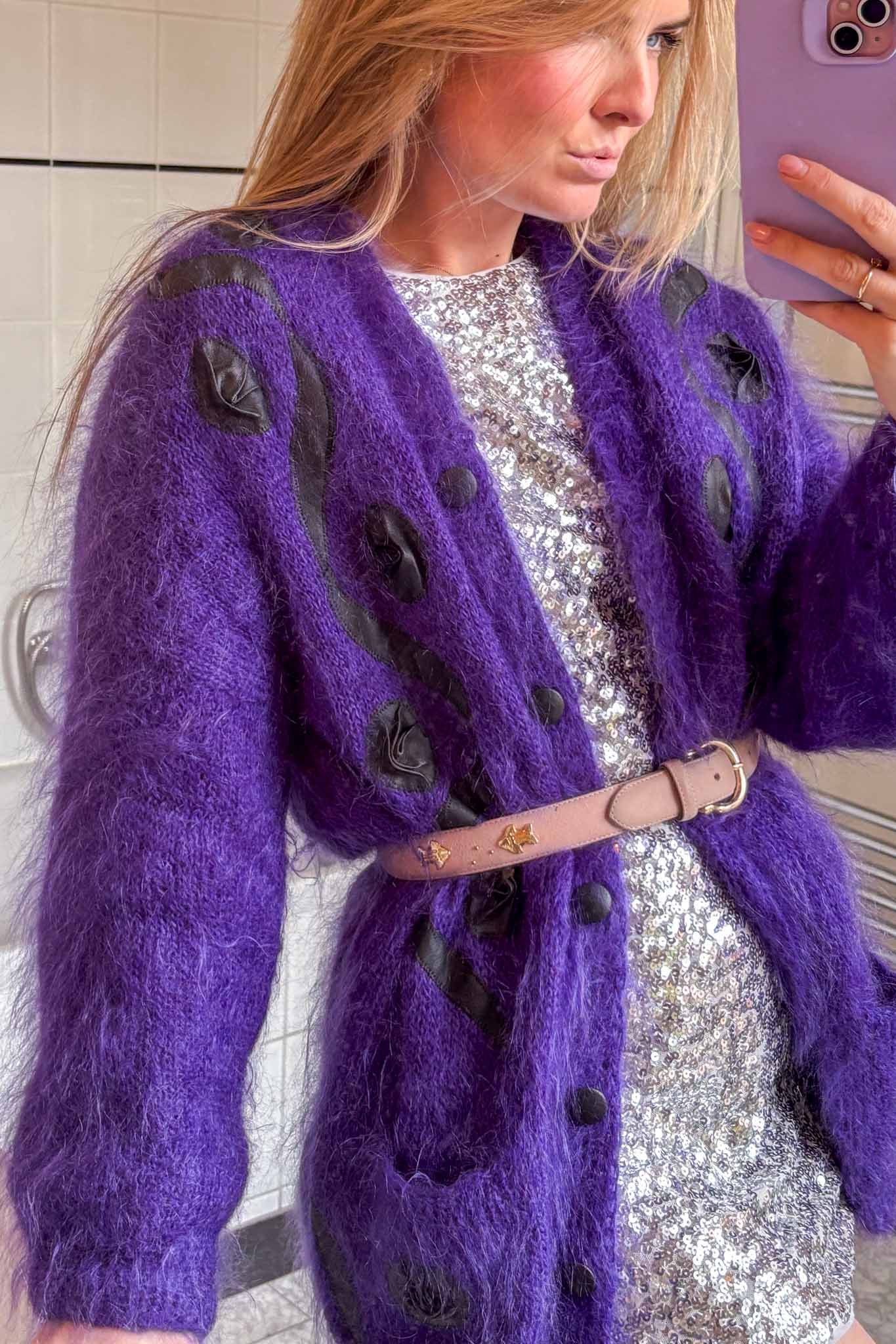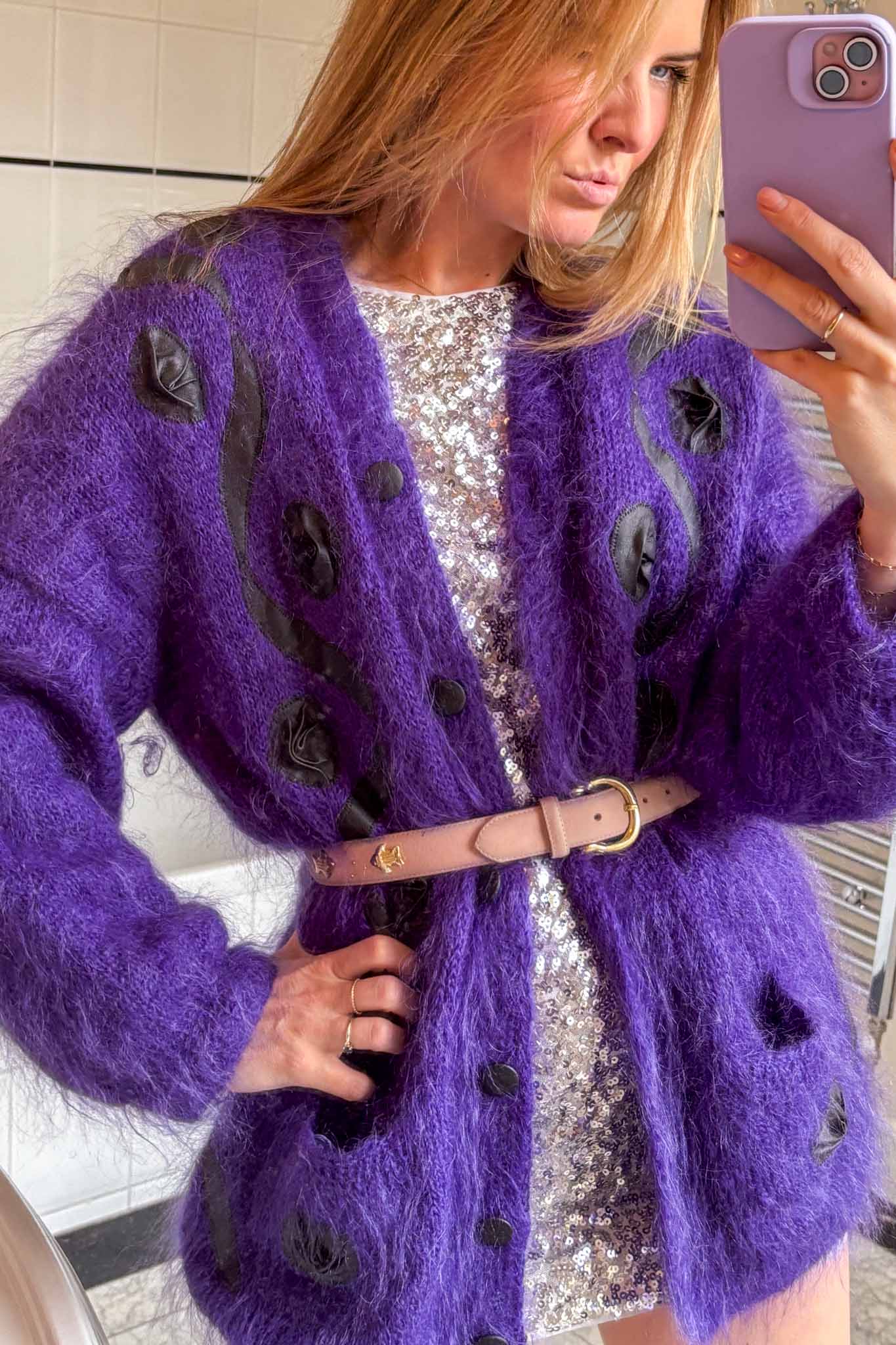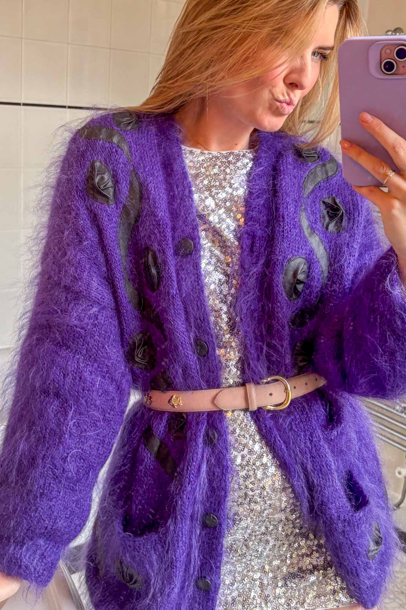 Wrap yourself in effortless elegance with this purple mohair maxi cardigan, a cosy and statement-making piece handpicked in Italy. Soft, plush, and beautifully warm, it features a smooth interior lining for added comfort and refined structure — the perfect blend of chic and practicality for the season.