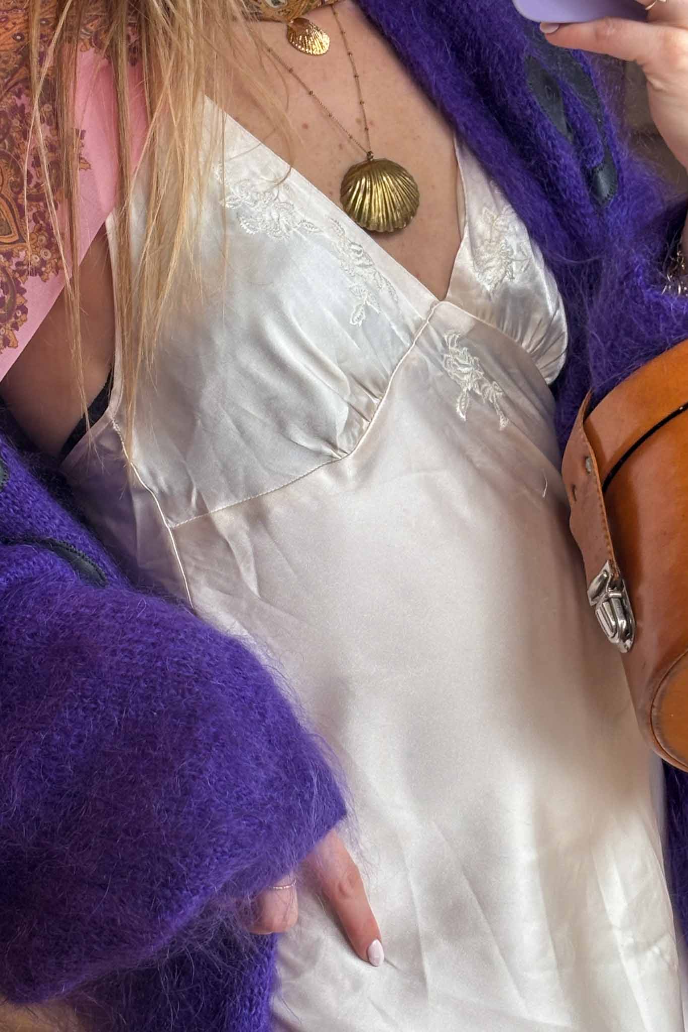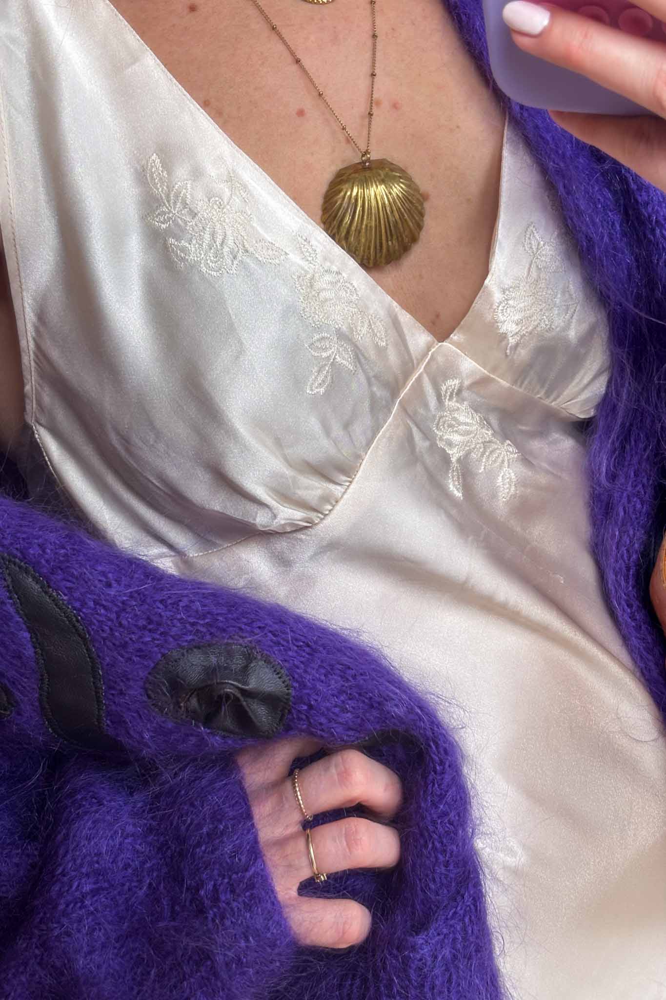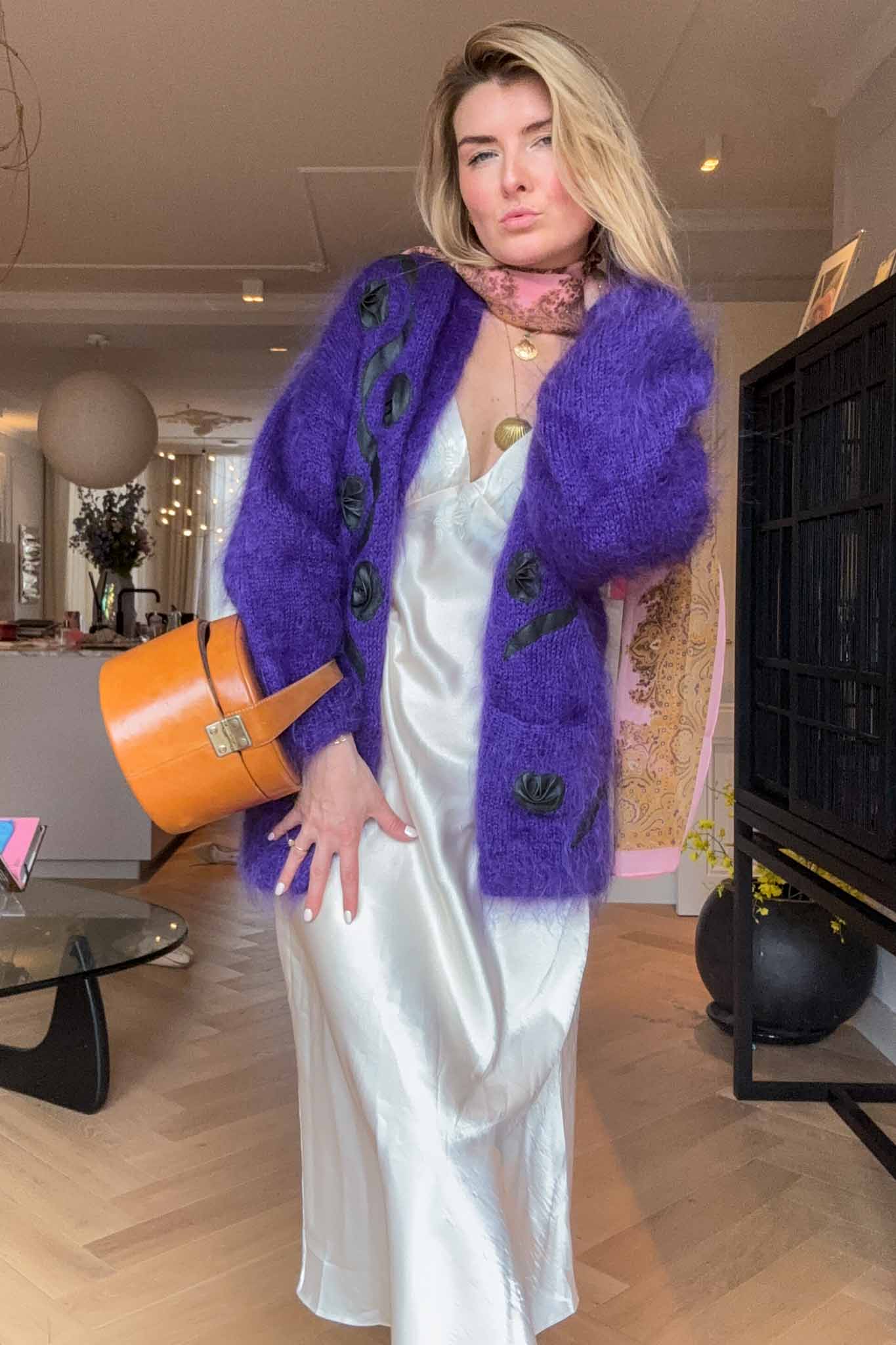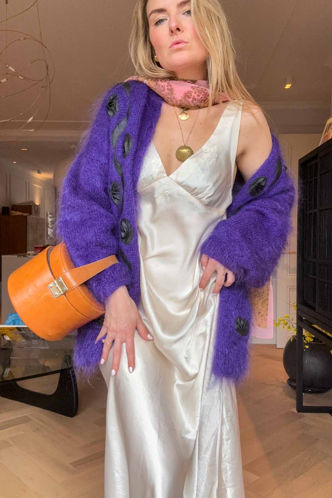 Wrap yourself in effortless elegance with this purple mohair maxi cardigan, a cosy and statement-making piece handpicked in Italy. Soft, plush, and beautifully warm, it features a smooth interior lining for added comfort and refined structure — the perfect blend of chic and practicality for the season.