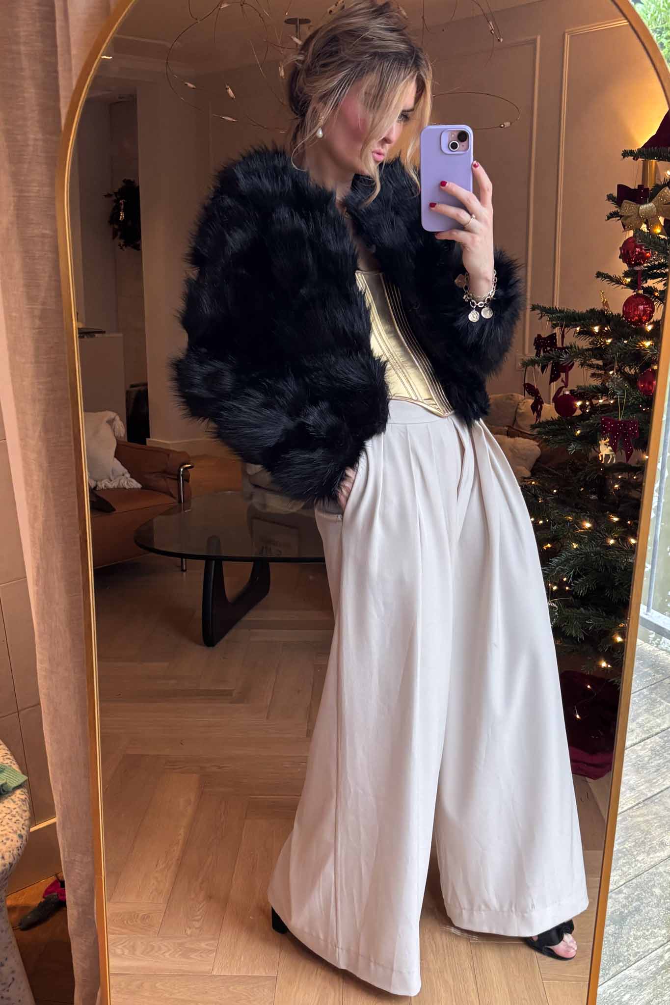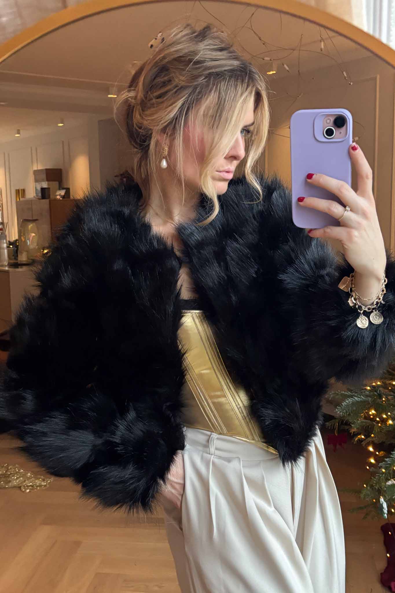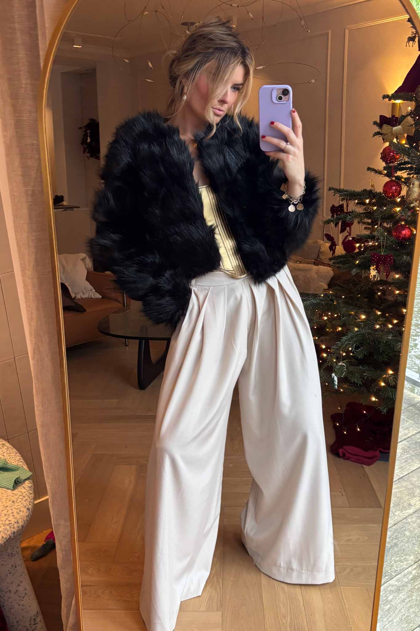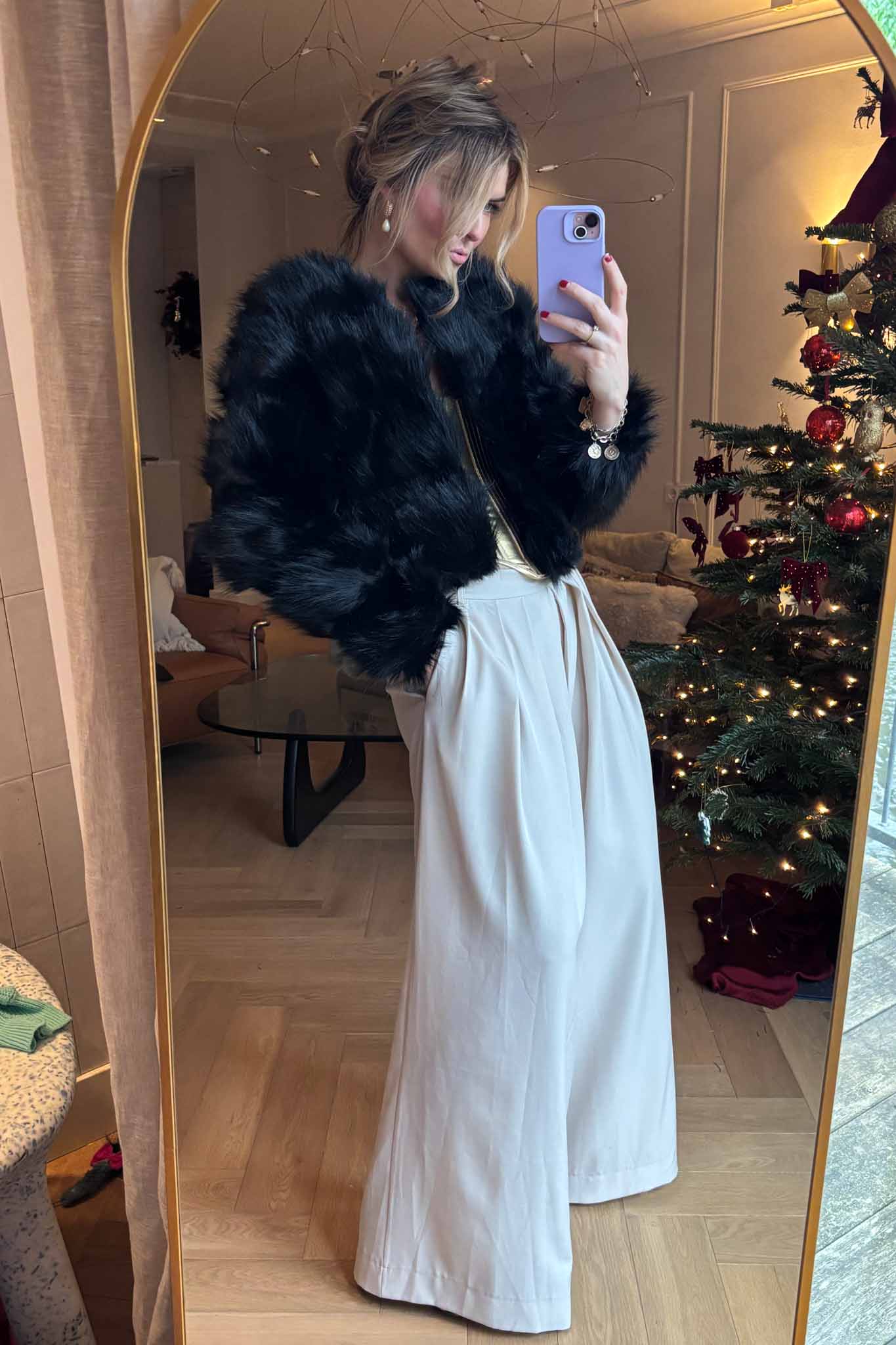 A bold, refined coat that channels glamour and edge — small in size, huge in style.