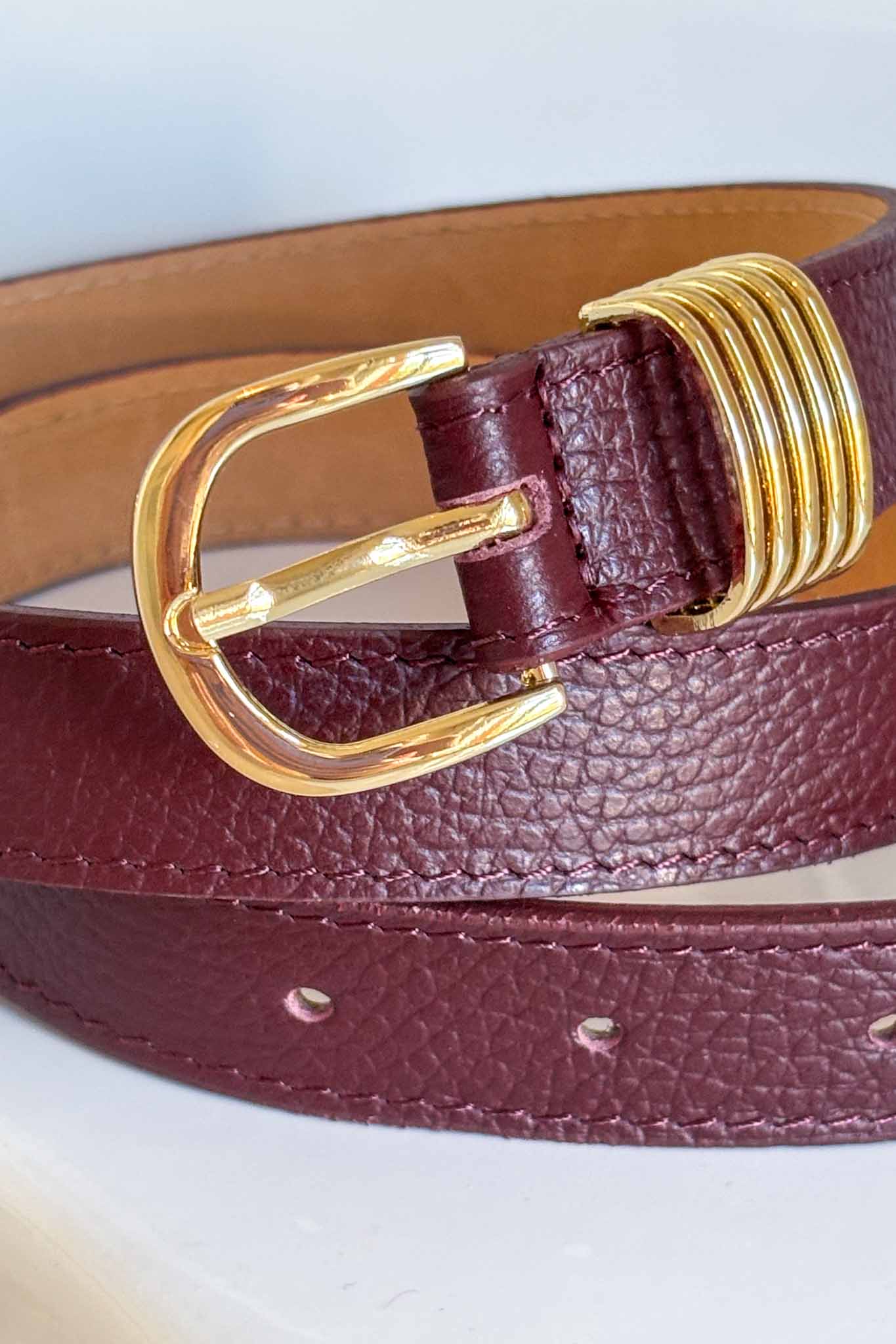 Elevate your autumn wardrobe with the Firenze Italian Leather Belt, a statement accessory that blends luxury craftsmanship with timeless style. Made in Italy from genuine leather in a rich purple-burgundy hue, it captures the warmth and elegance of the fall season.