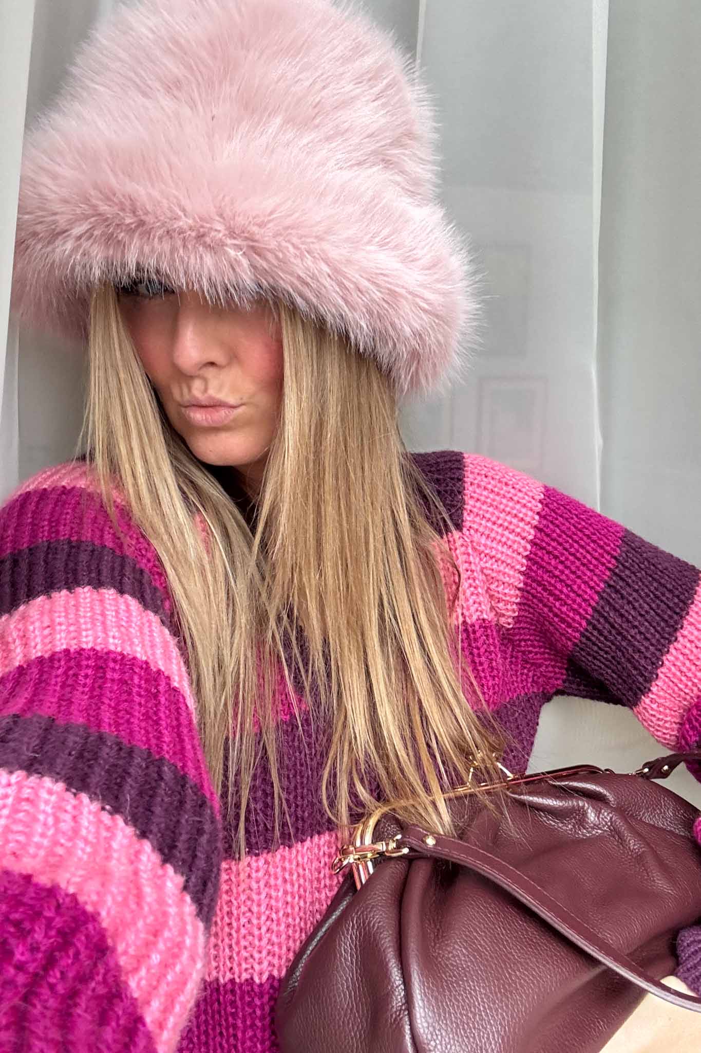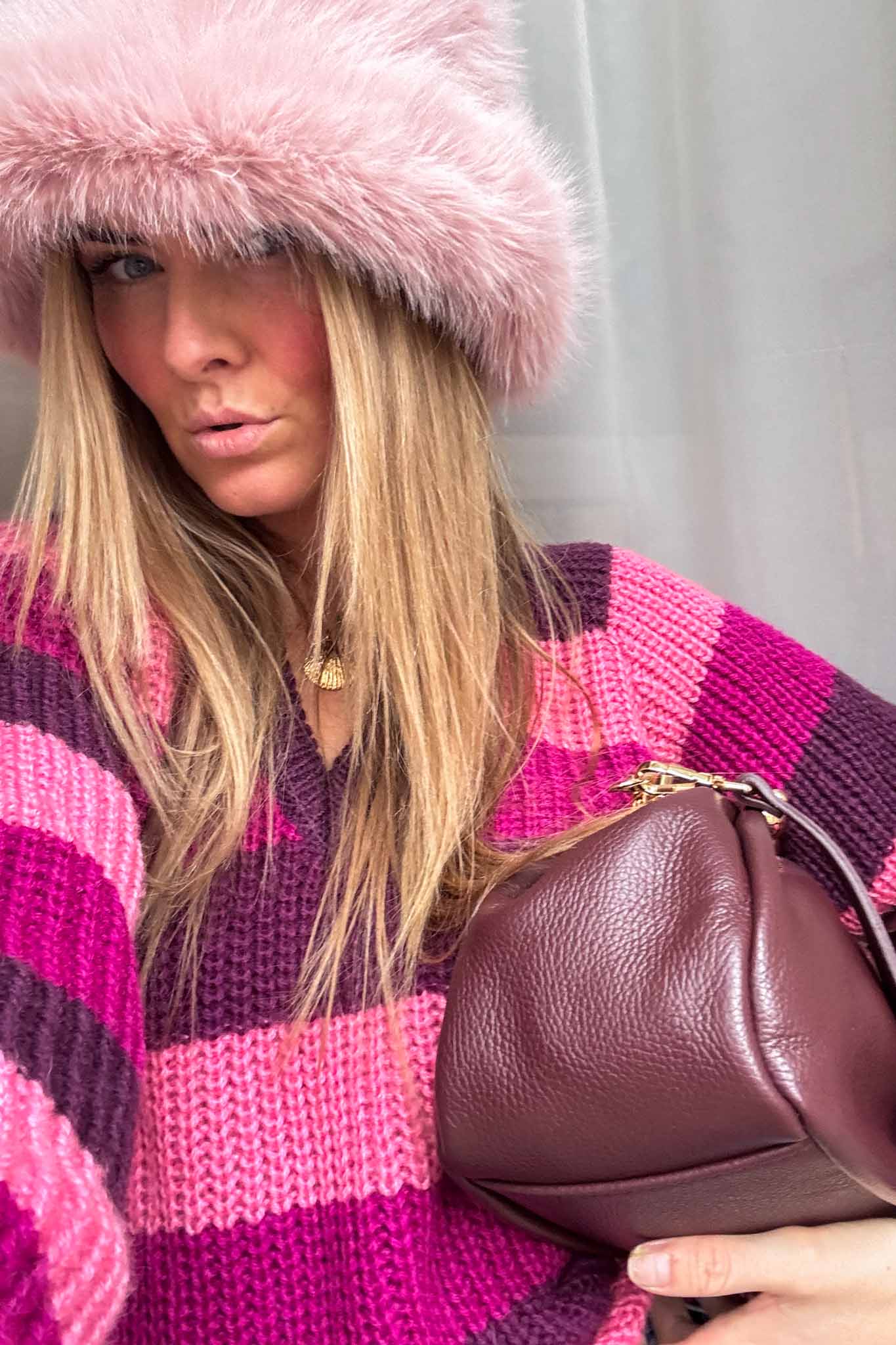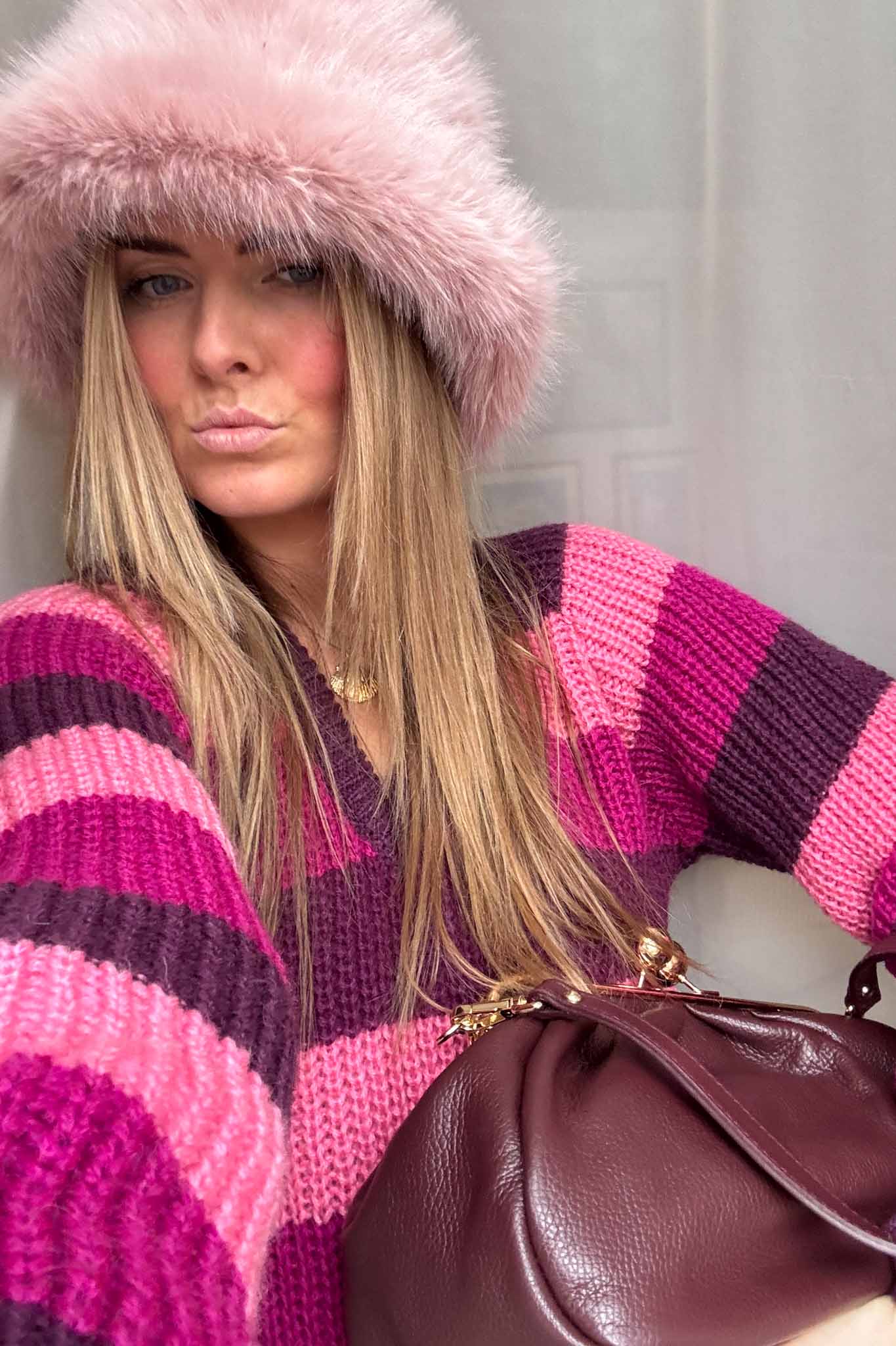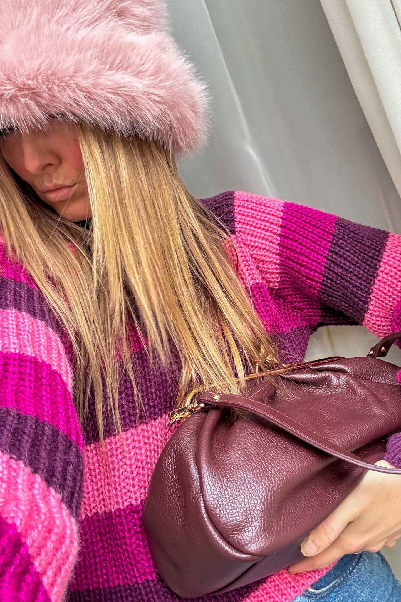 Bring a vibrant touch to your wardrobe with this hand-knitted vintage striped sweater, featuring a beautiful blend of purple, pink, and coral tones. This unique piece was handpicked in Italy and crafted from soft, breathable 100% cotton, making it the perfect colorful companion for the season.