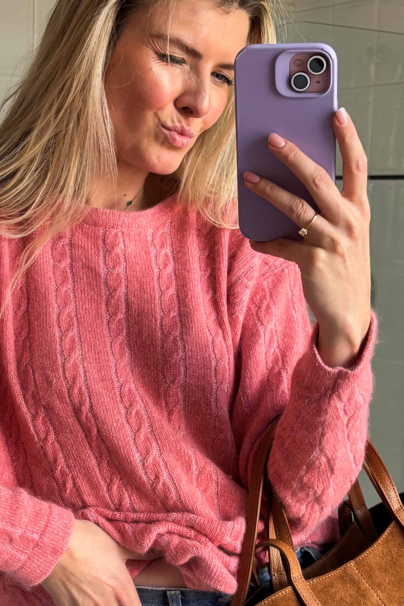 Wrap yourself in the ethereal softness of this soft Italian for “pink cloud.” This cable-knit cashmere piece is designed for ultimate comfort, blending warmth and lightness in a single luxurious layer. The oversized one-size fit drapes beautifully across all silhouettes, adding a sense of ease and quiet sophistication. Made in Italy and styled here on a 1m78 model (size 36), Nuvola Rosa is that effortlessly chic knit you’ll reach for season after season.