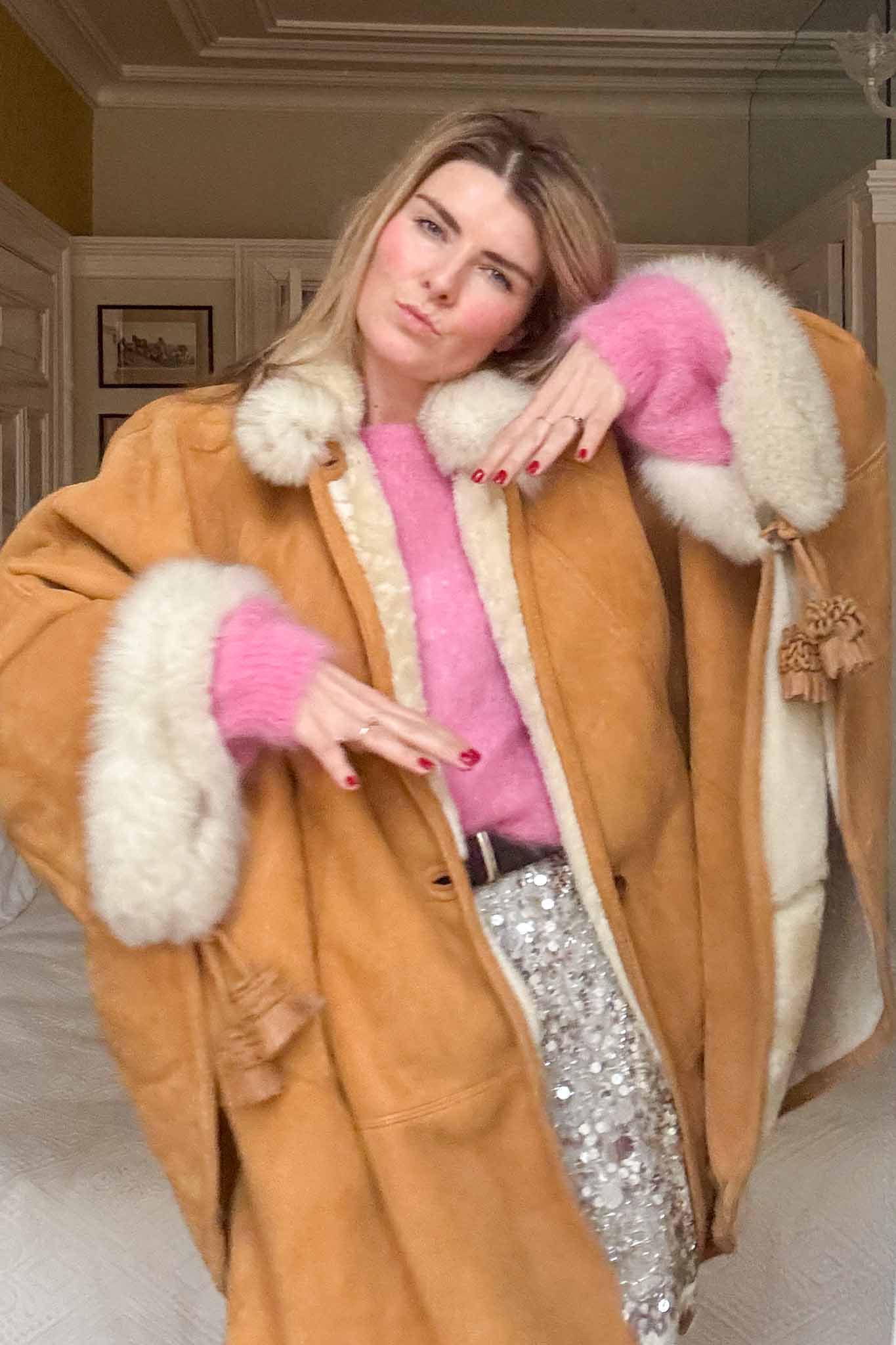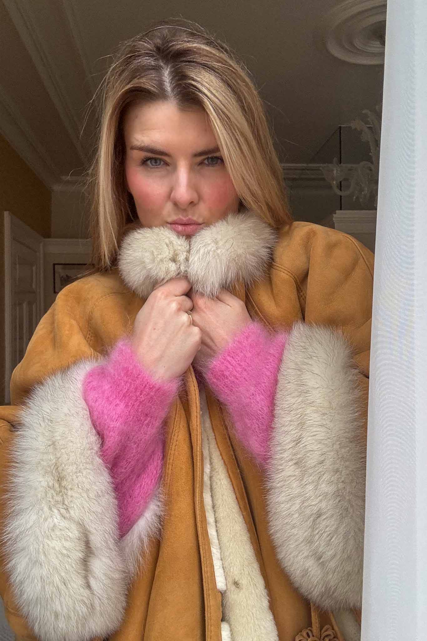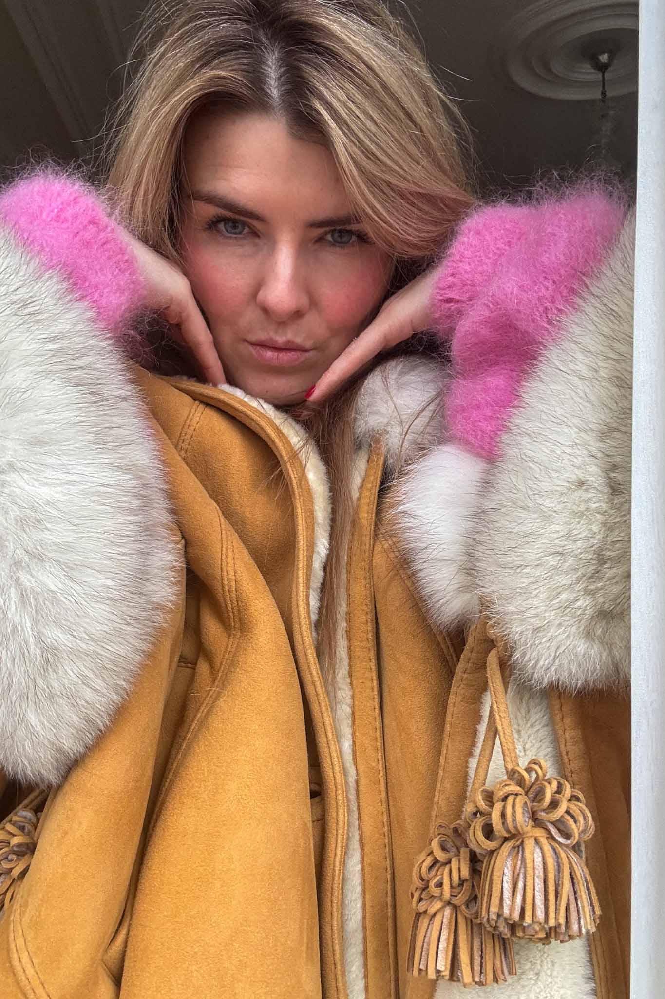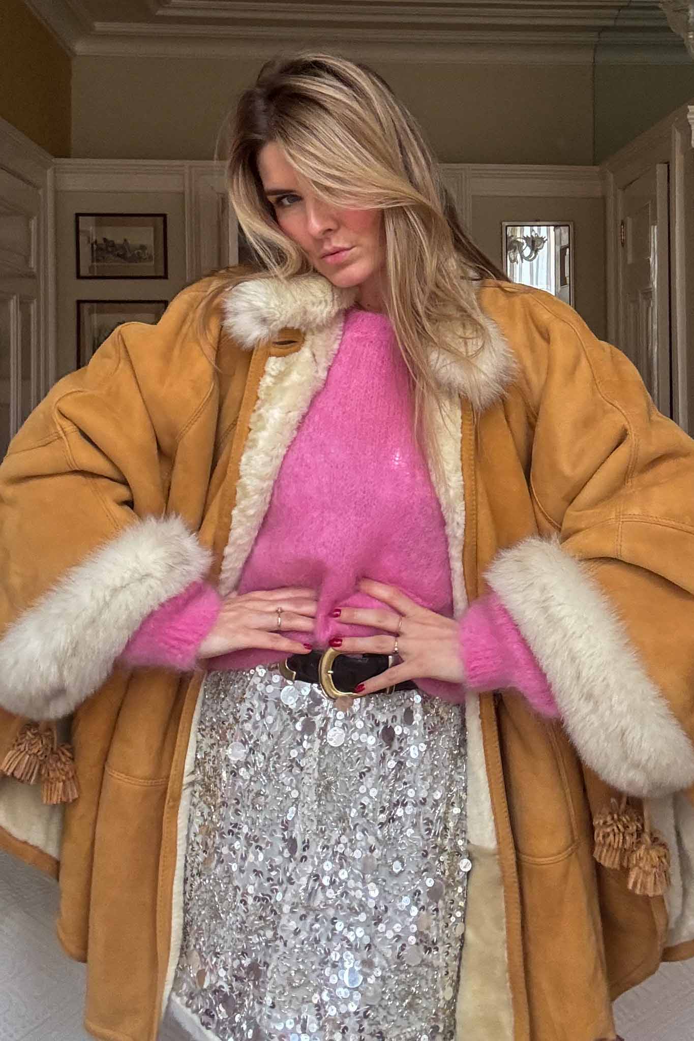 Wrap yourself in timeless Italian luxury with the La Dolce Lammy Cape. Handpicked in Italy, this vintage treasure is crafted from supple suede with a plush lammy lining that keeps you warm while exuding effortless elegance. The dramatic fur-like collar and wrist details bring the perfect touch of chic, making this cape as striking as it is cozy. We totally fell in love with the quality of this beauty, the tassels details, the lammy detailing….