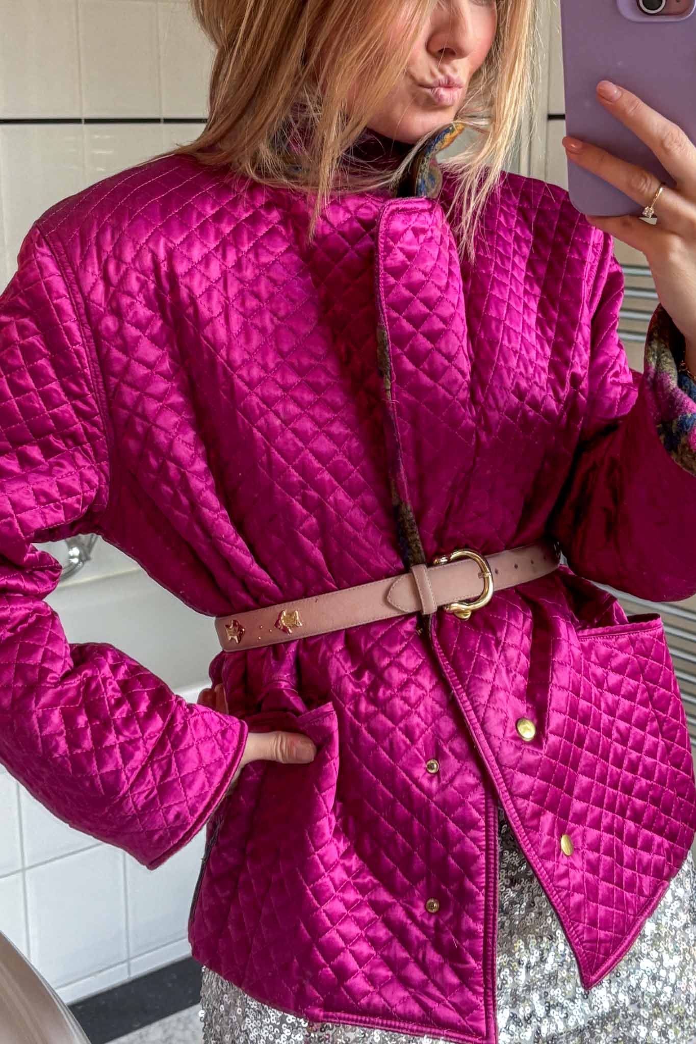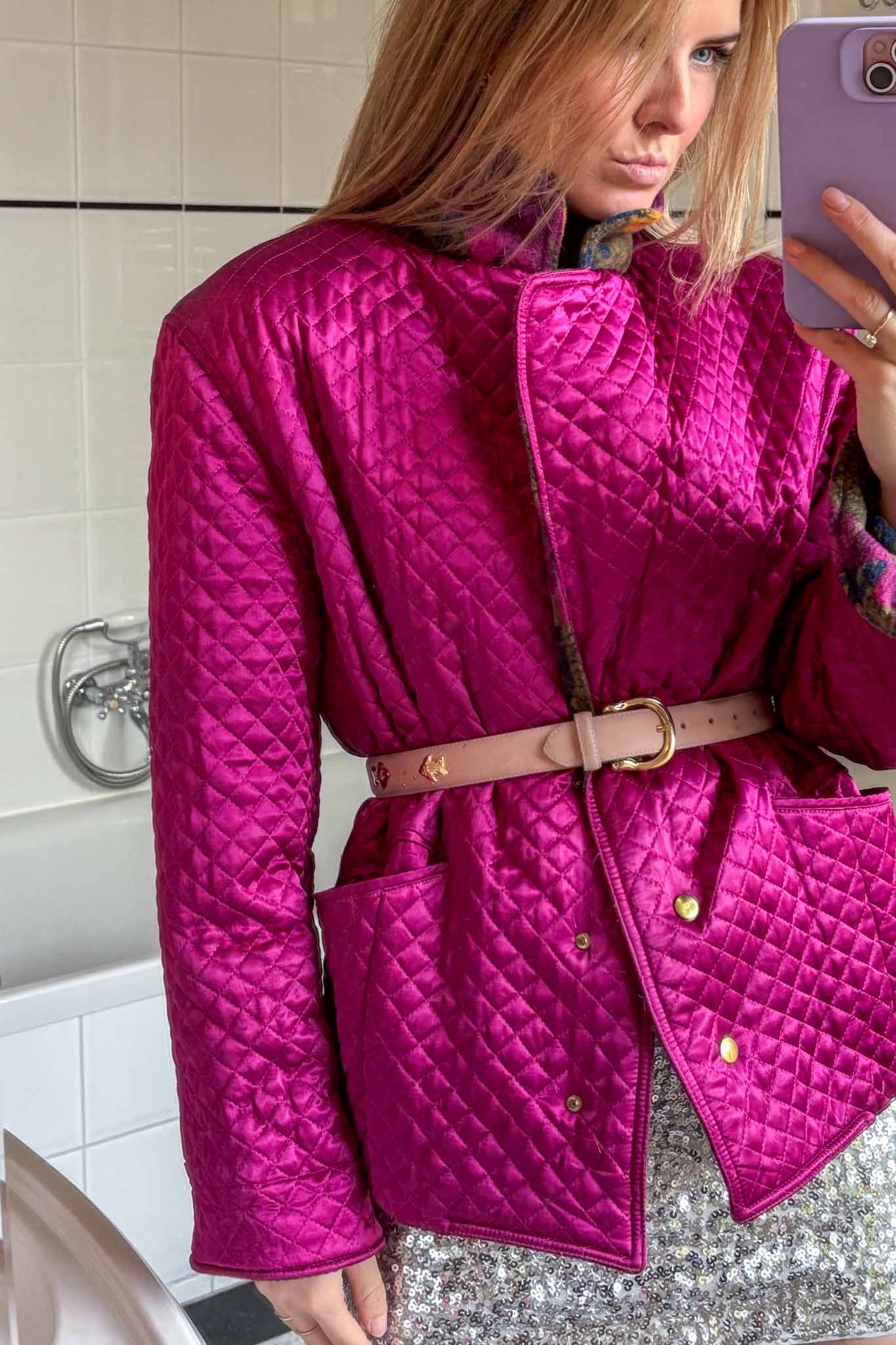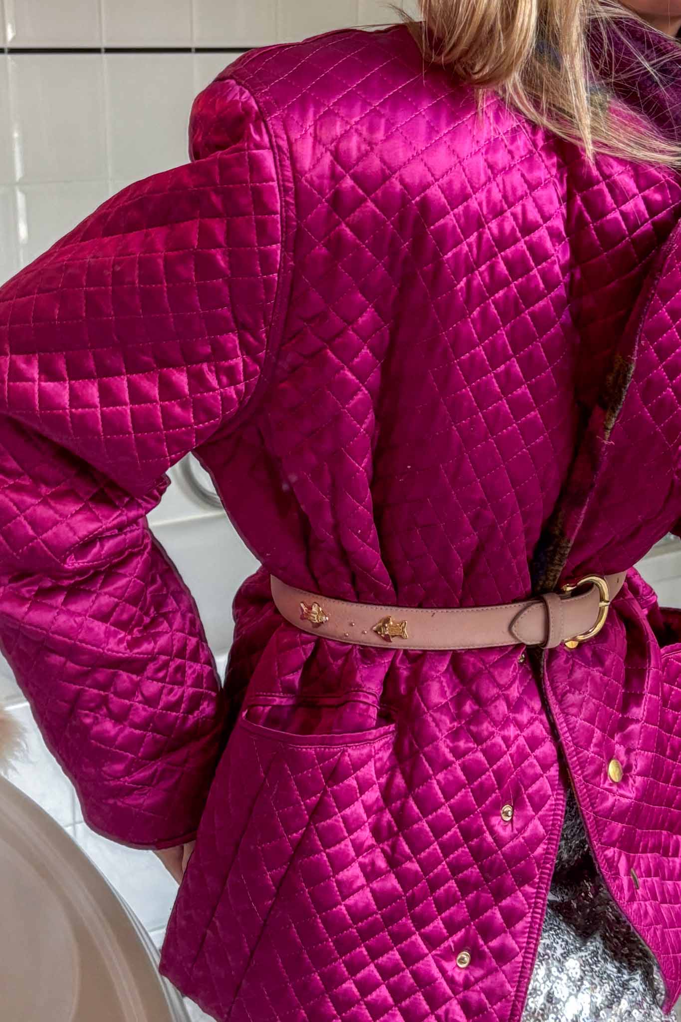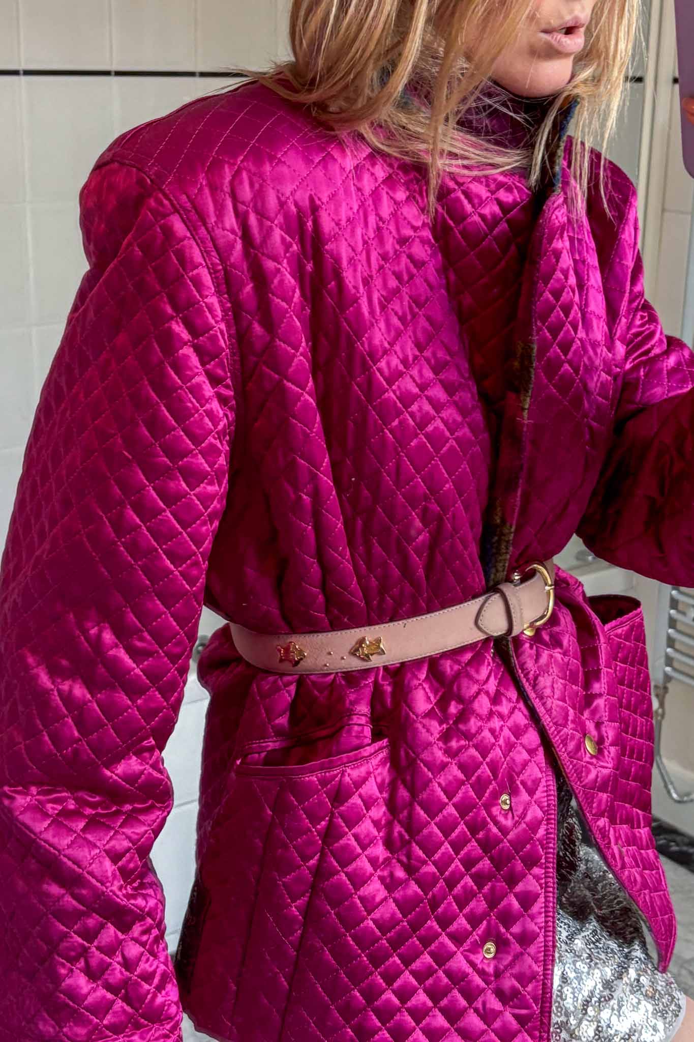 Wrap yourself in hot decadence with Maison meringue fuchsia blazer, a dreamy fusion of vintage elegance and modern street muse energy. Crafted from luminous pink satin viscose, this padded blazer-meets-bomber silhouette radiates soft power and playful charm. The key and stunning element of this blazer are the padded shoulder and the padded details for this blazer.