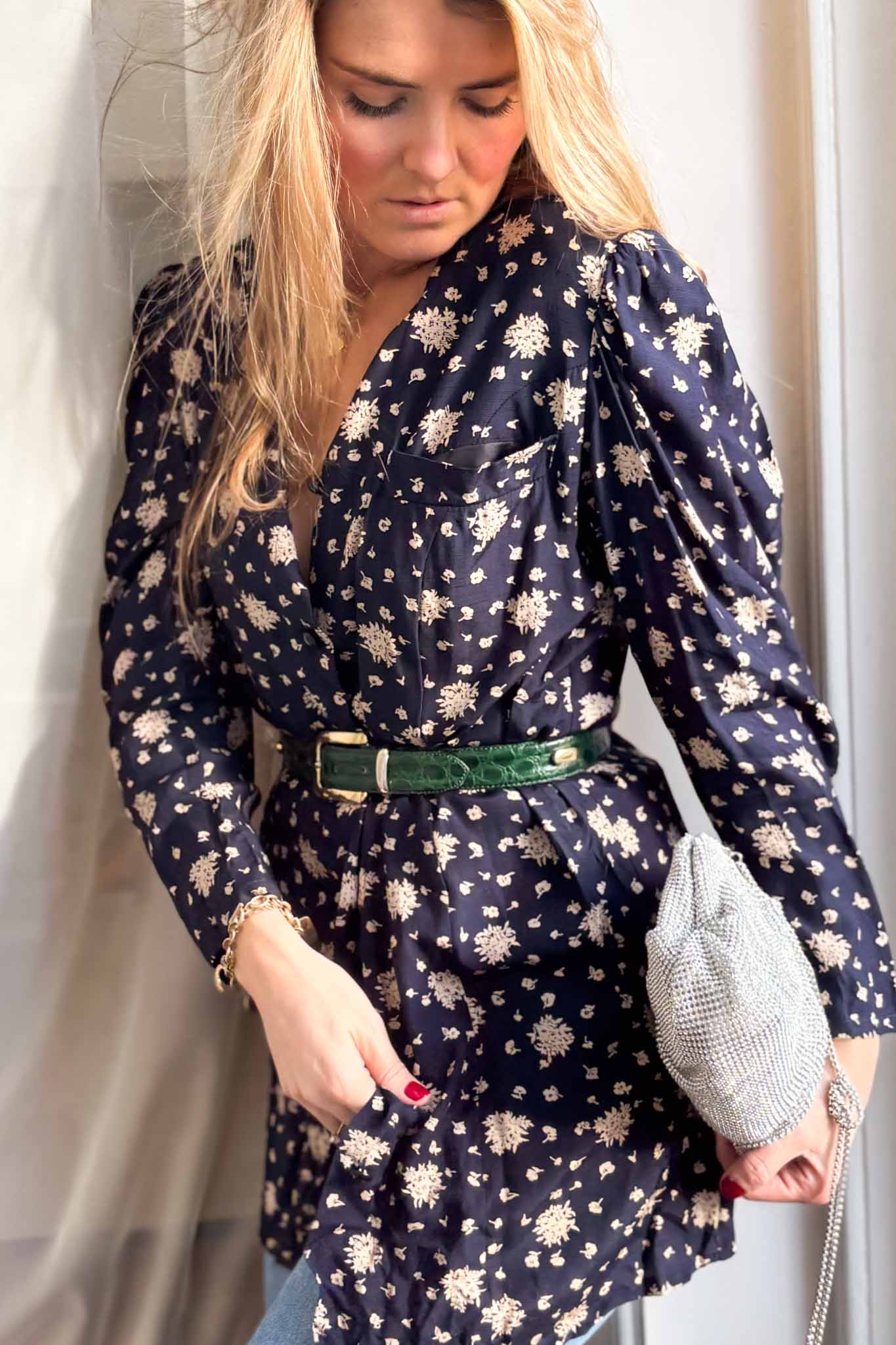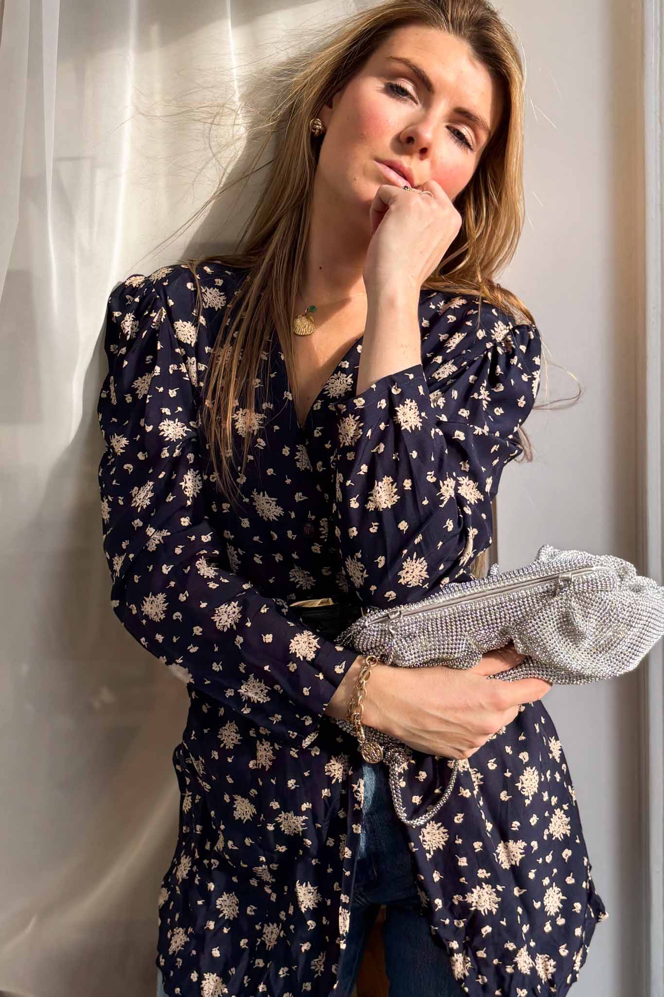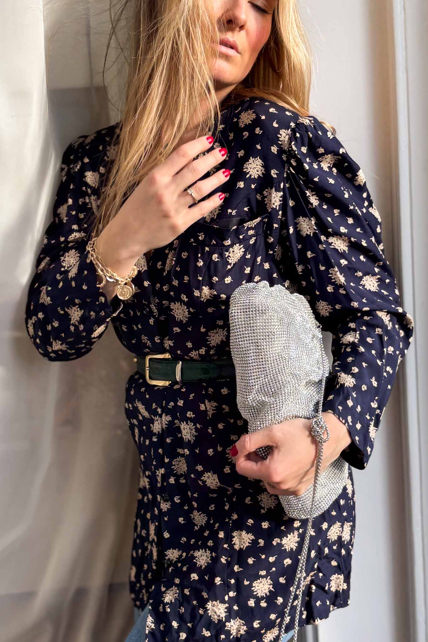 Embrace effortless sophistication with the Marine Whisper Blouse, a breezy marine blue top adorned with a soft, delicate white print. Lightweight and airy, this blouse drapes beautifully for a relaxed yet refined silhouette, perfect for daytime elegance or layered evening looks.