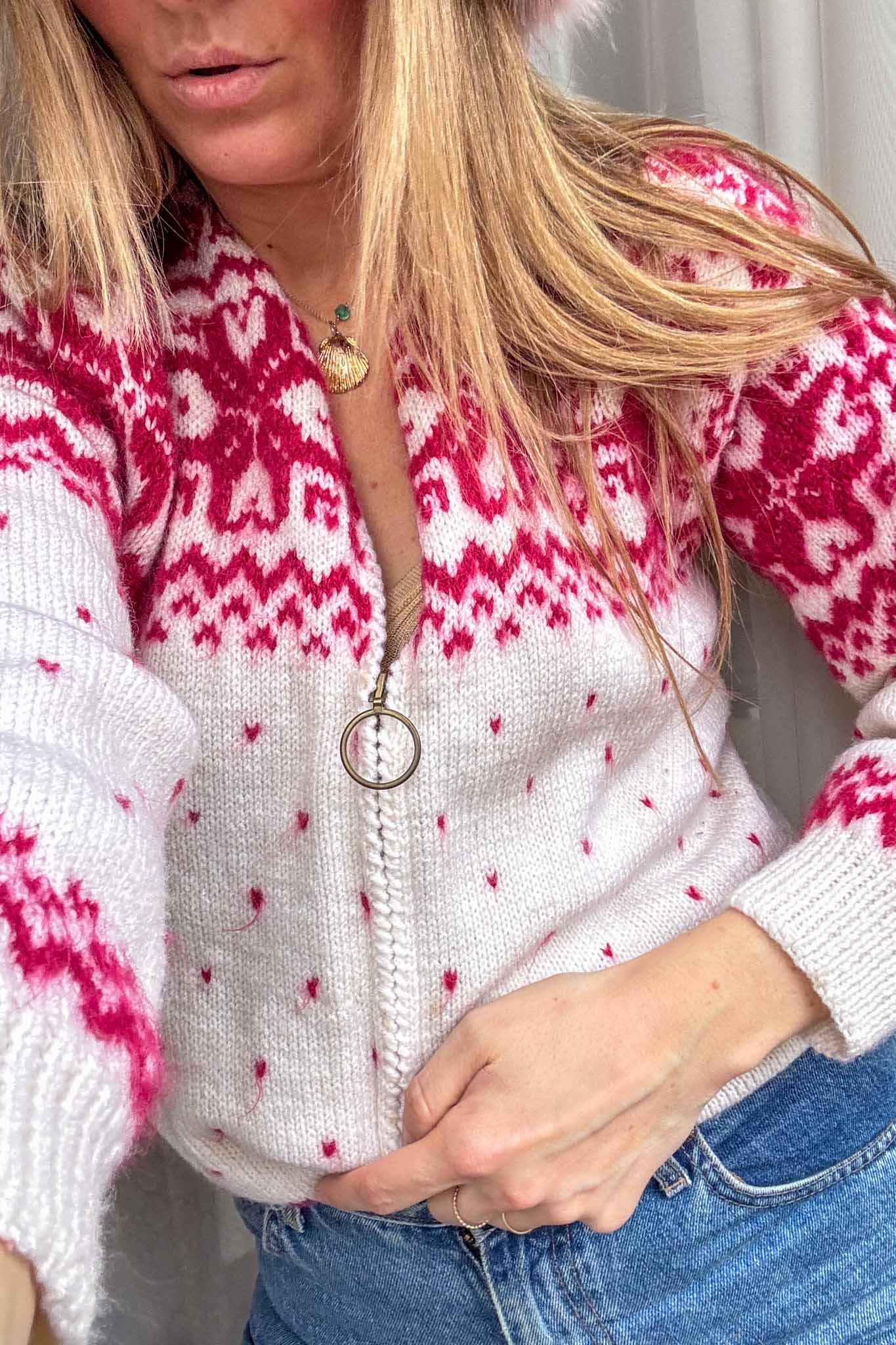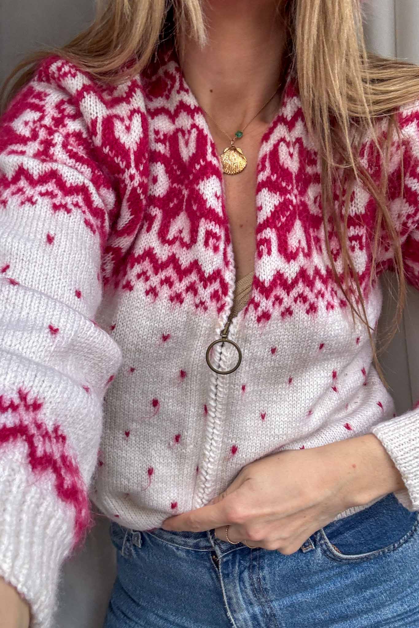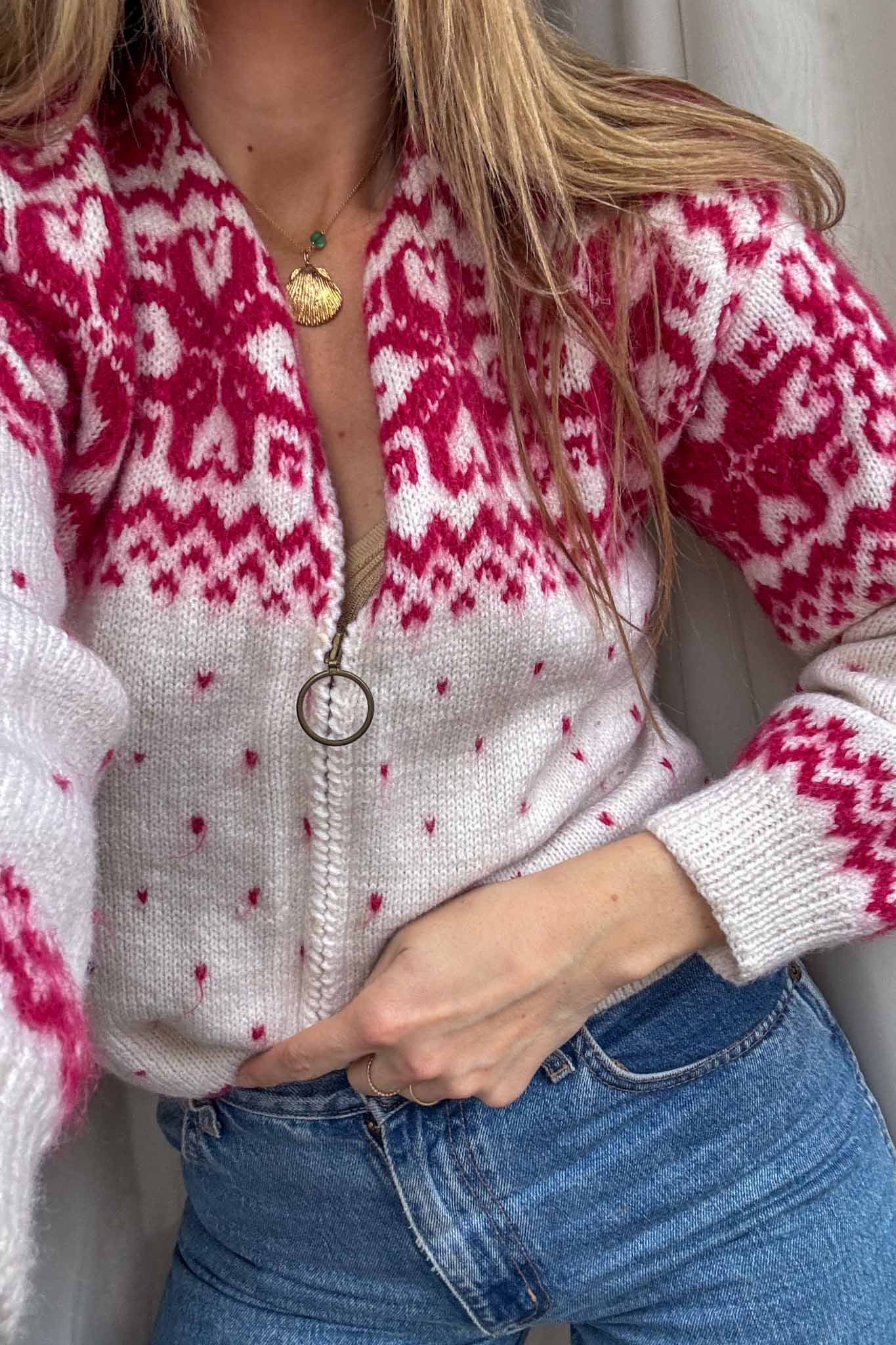 Channel effortless winter-cool style with this North Pole Norway red woolen cardigan, the perfect blend of Nordic charm and Free People–inspired chic. Crafted from cozy vintage wool, it features a bold front zipper, giving it that laid-back, effortlessly stylish edge.