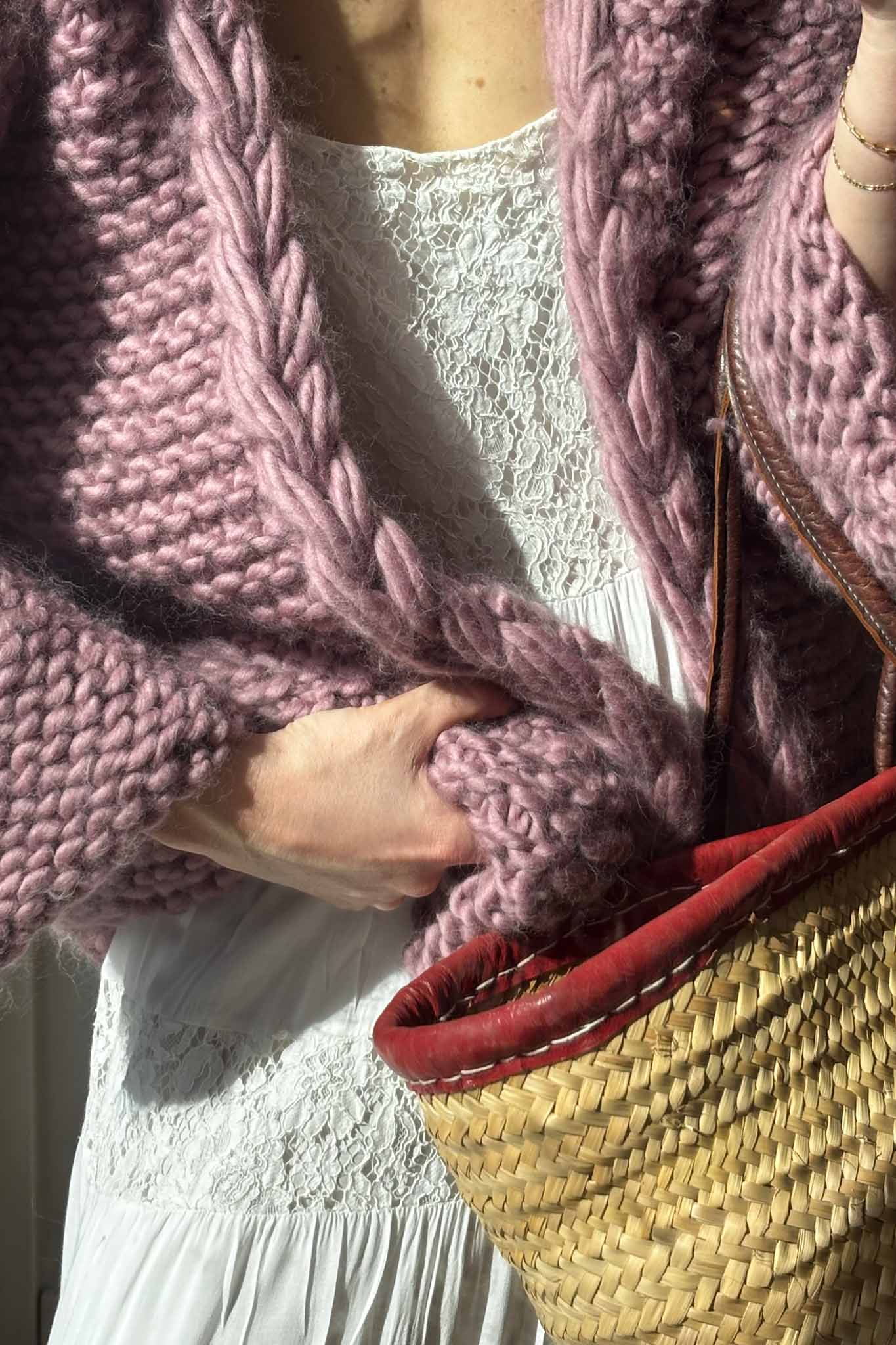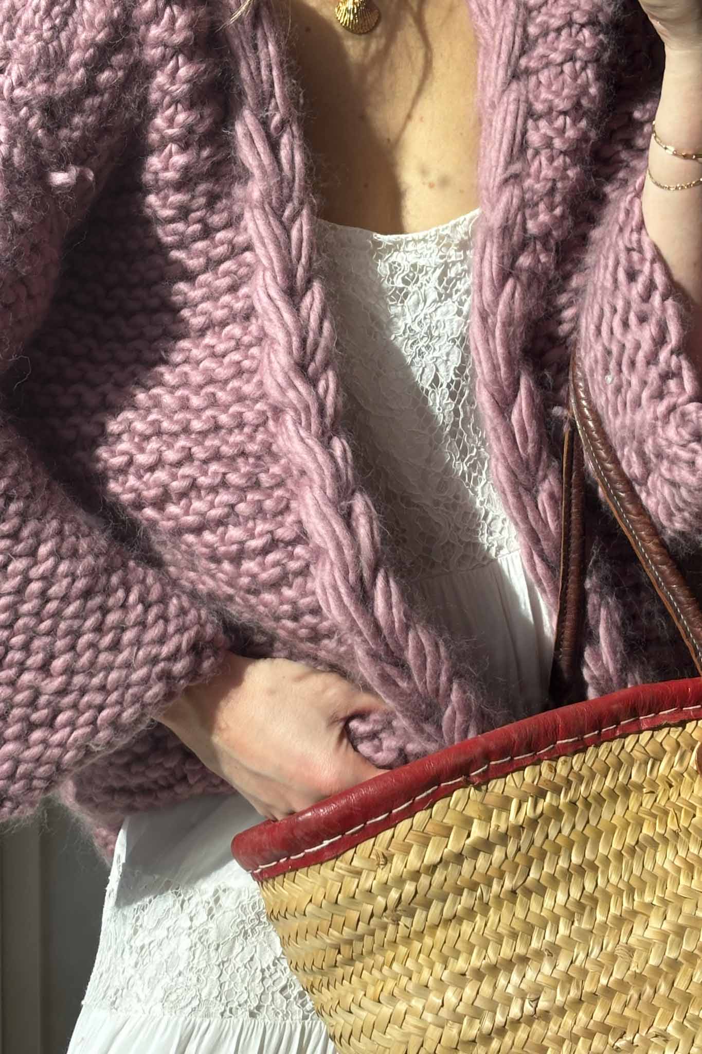 Soft, feminine, and effortlessly chic, this dusty lilac knit feels like a spring morning in Paris. The beautifully crafted cable knit adds texture and depth, while the voluminous balloon sleeves bring a romantic silhouette that elevates even the simplest outfit. Perfect styled with denim, a satin skirt, or layered over a slip dress for that understated “it-girl” look.