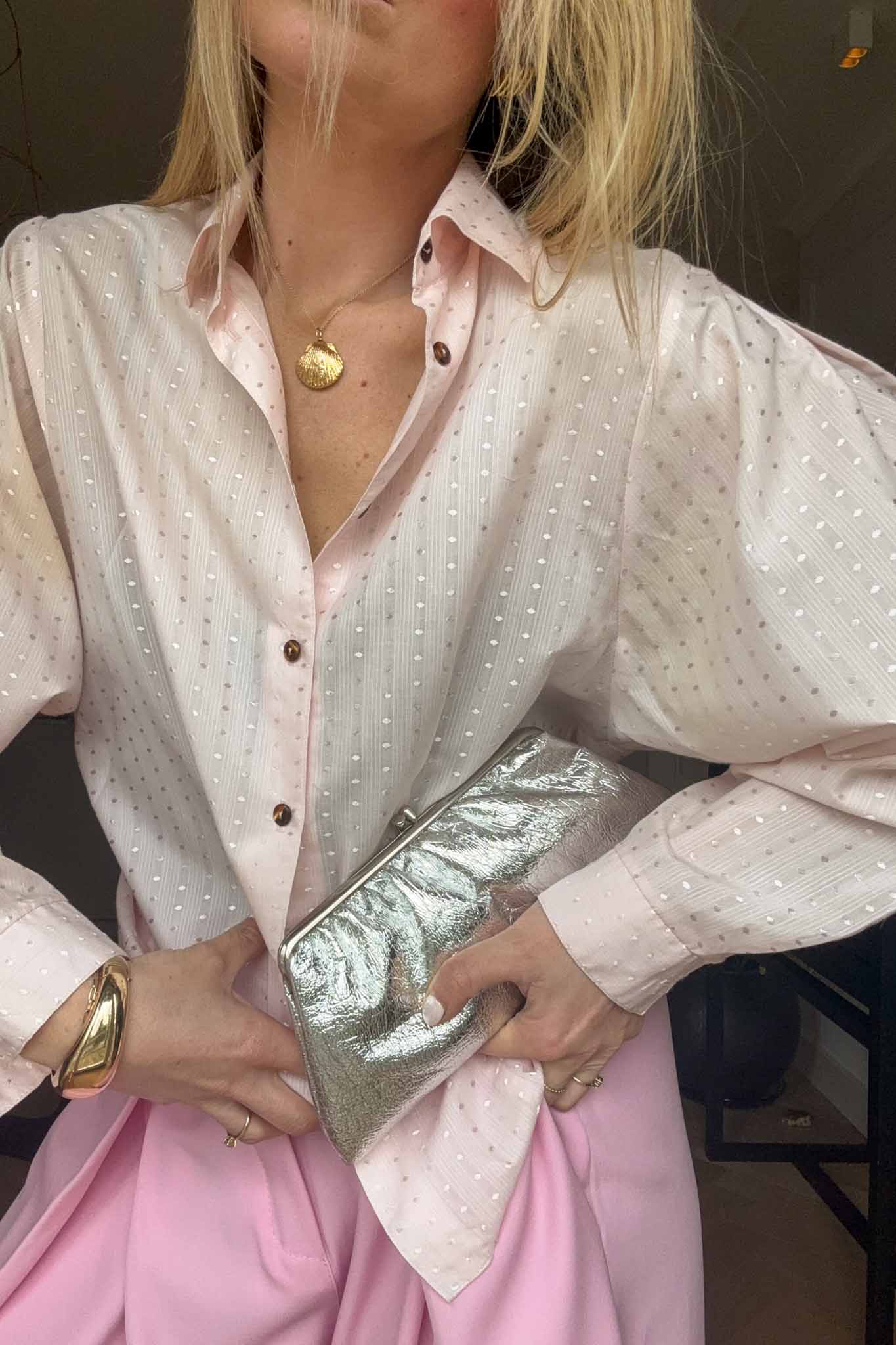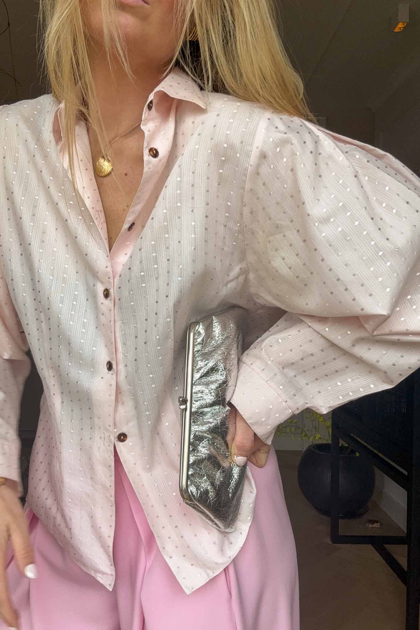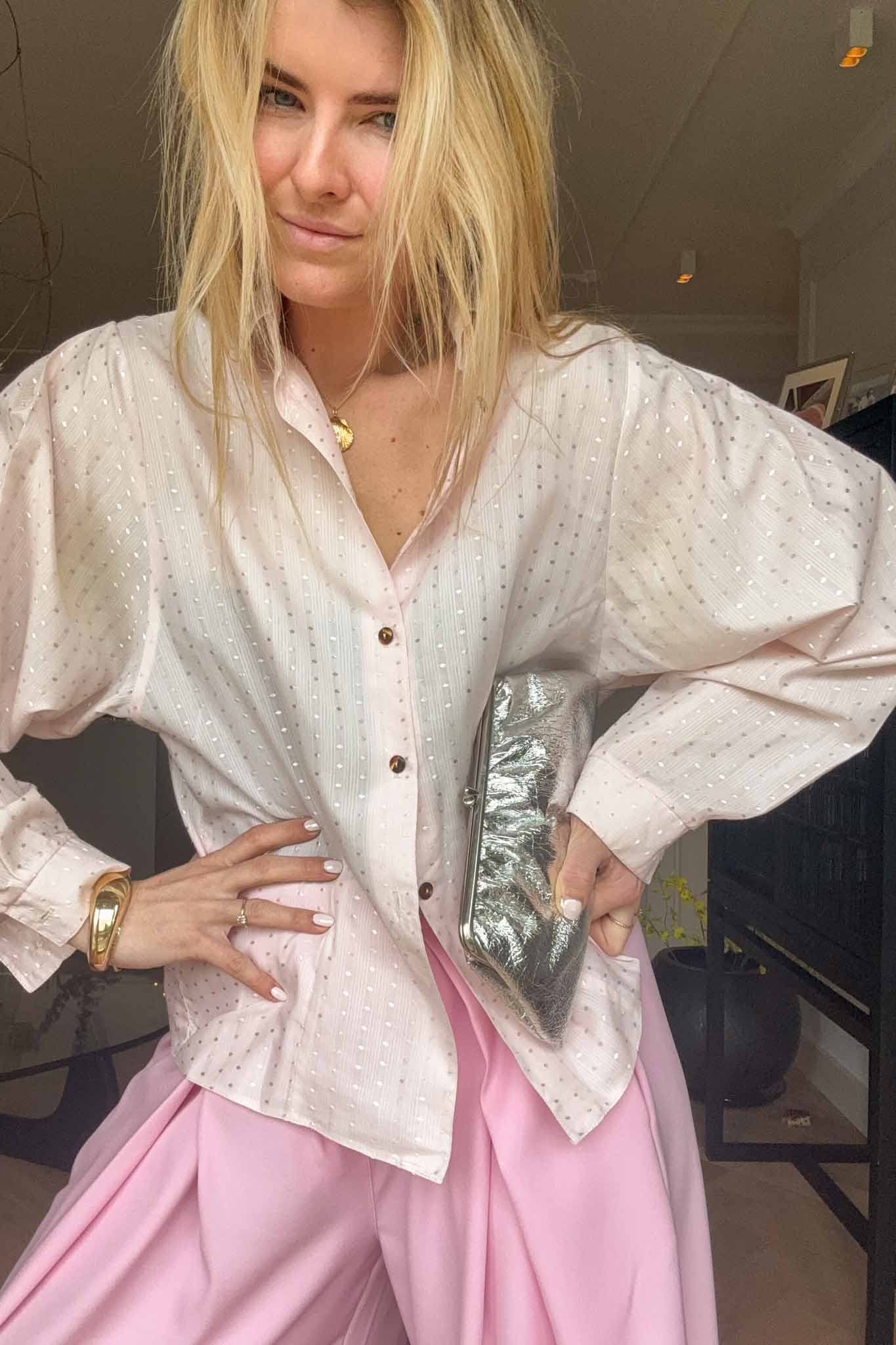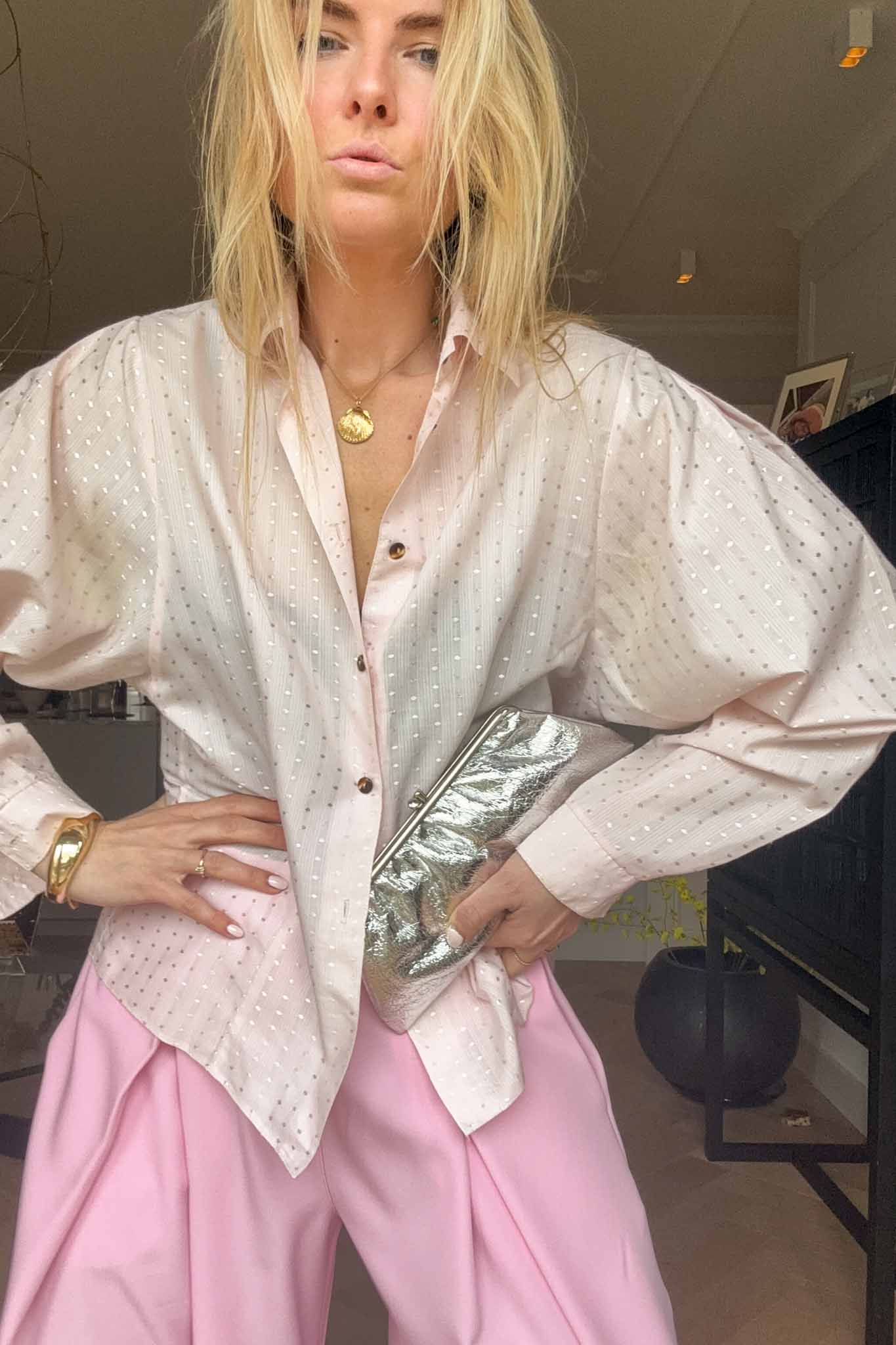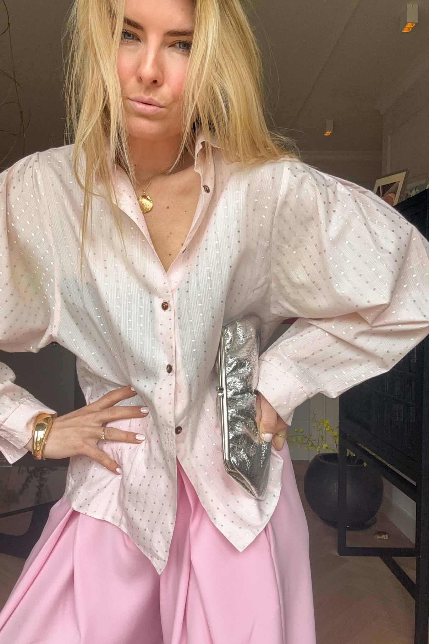 A soft pink dream blouse made from lightweight viscose with beautiful puffed sleeves and a classic button-down front. Elegant, feminine, and easy to style, a true wardrobe staple with a vintage touch.