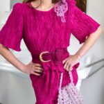This Perfect Raspberry and Ruffles for the Festivity vintage dress is an elegant ruffled dress to add to your wardrobe. This vintage gem has a beautiful round neckline with beaded details above the chest. The short sleeves add a touch of comfort while still making you look your most elegant and confident self on any occasion. The layered ruffles along the length of this stunning dress make it fun and perfect for a cocktail/dance/dinner party. This beautiful piece, hand-picked right from the heart of Paris, is quite stretchy so it can be worn in sizes 34/36 (with a belt to sublime your waist) and in small 38 38, as you can add a belt to adjust it to your waist. Our model is a size 34. Pair with your favorite knee-high boots and cozy coat and you are ready to be the sensation of any event you attend. Just like all our vintage treasures, this dress is steamed and dry-cleaned, especially for you. Are you ready to fall in love?