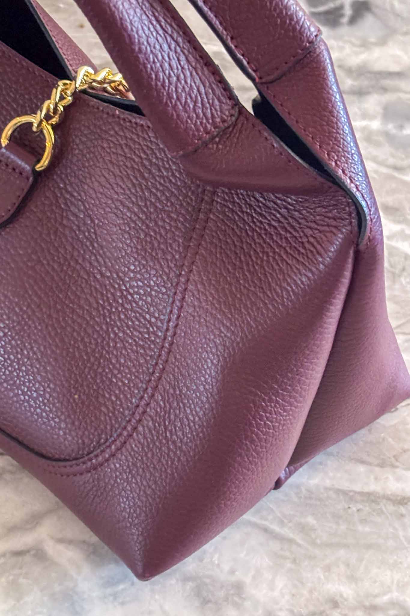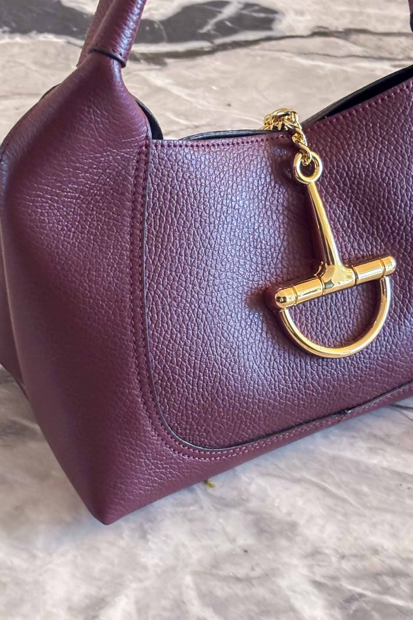 Elevate your accessories game with the Soho Edit Bordeaux Leather Bag, a luxurious bordeaux leather purse with subtle embossed texture reminiscent of croco—without the full croco effect. The lightly reliefed leather adds depth and sophistication, while a glimmering golden buckle provides the perfect touch of elegance.
