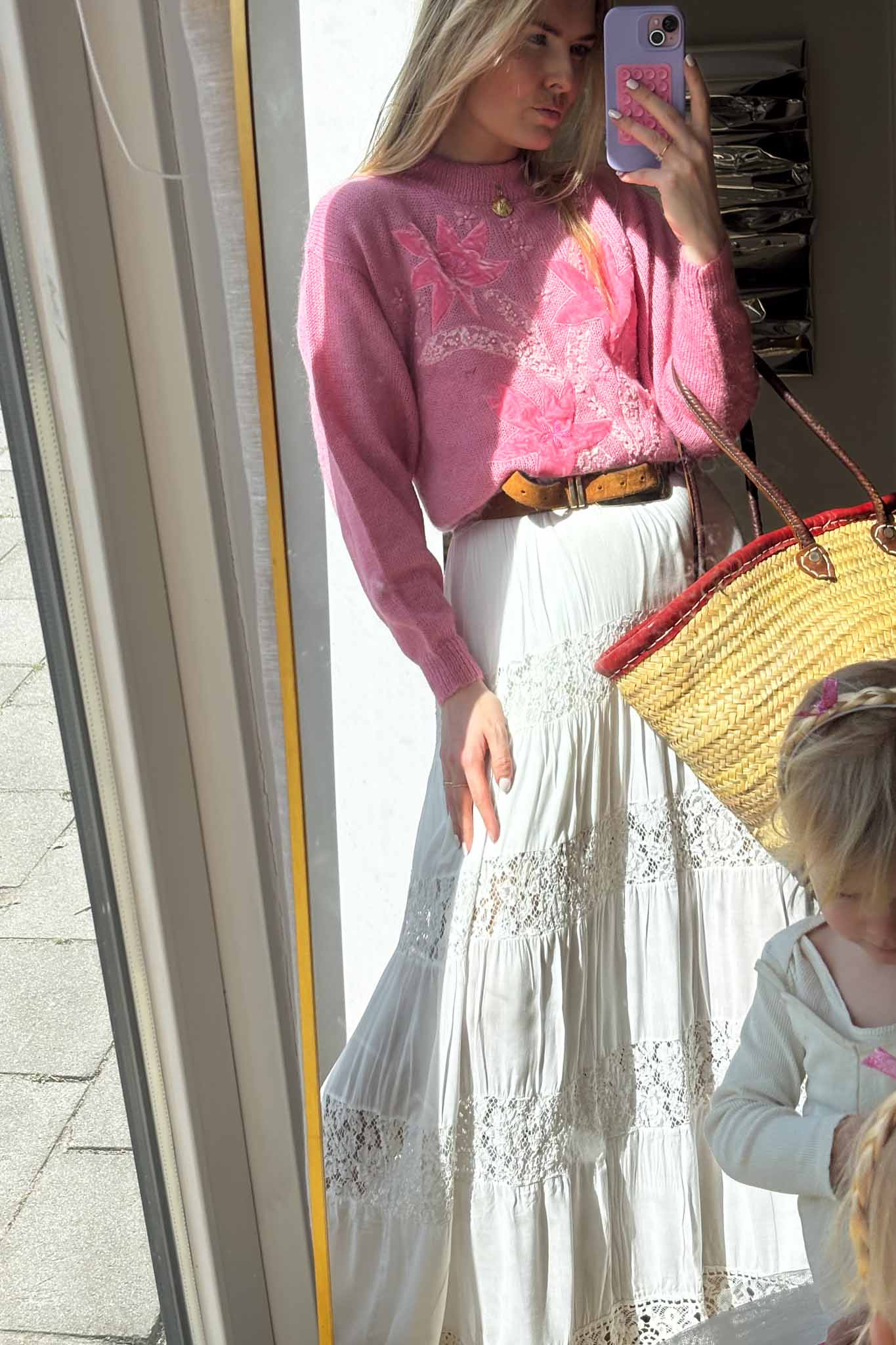 Playful yet refined, this wool knit features delicate star and floral-inspired patterns that give it a subtle statement feel. Cozy and eye-catching, it’s perfect for adding personality to everyday outfits.