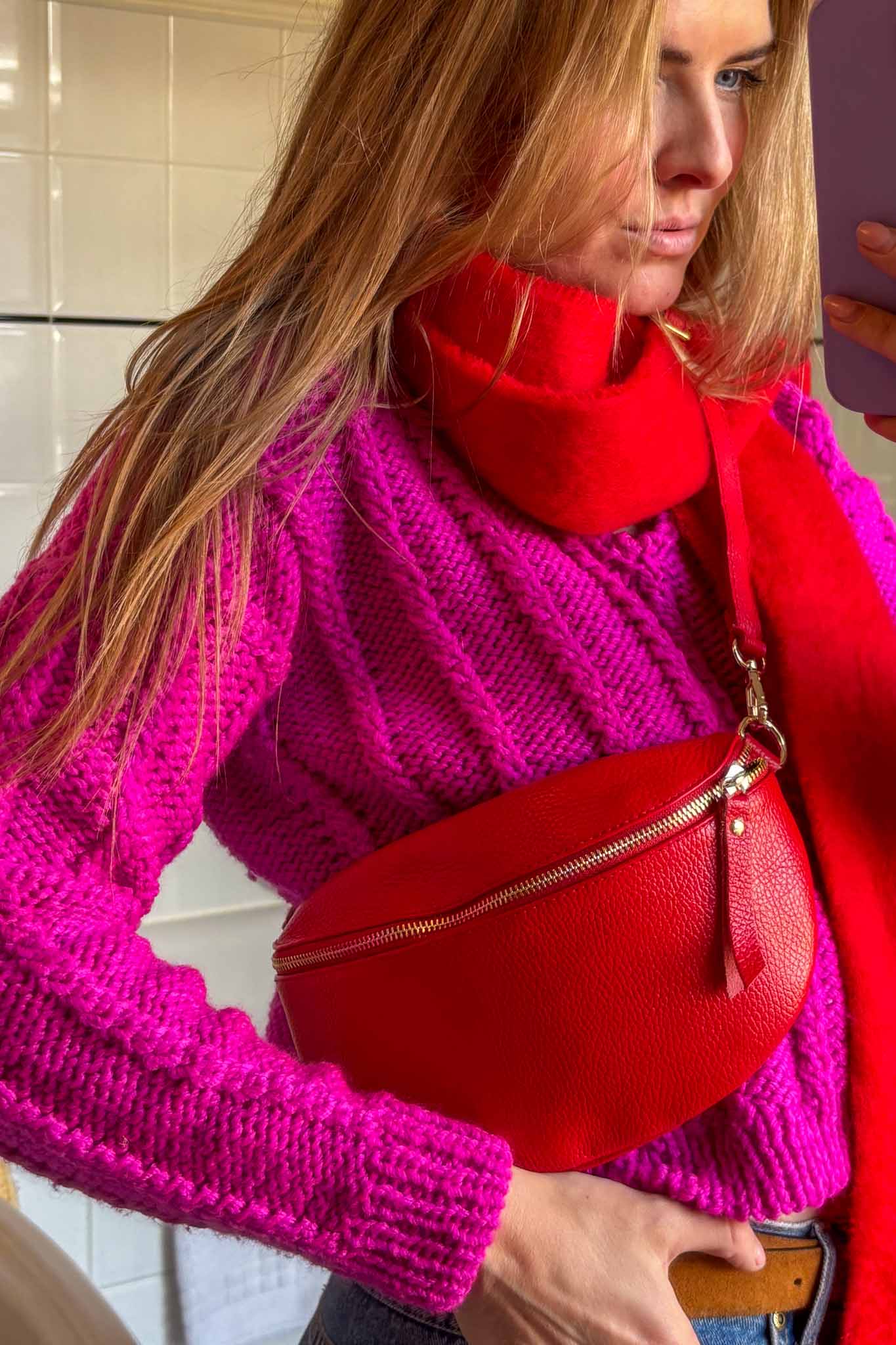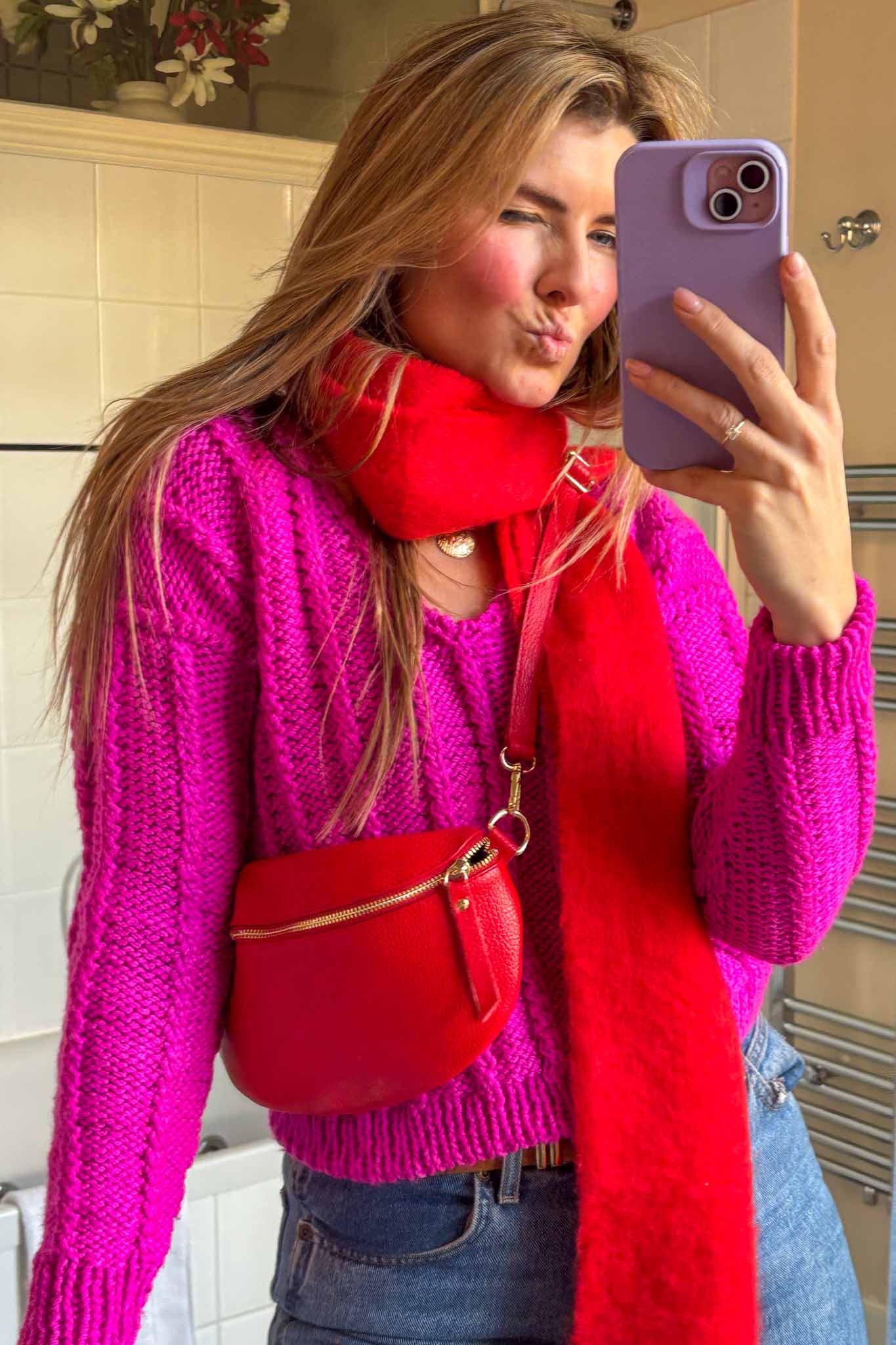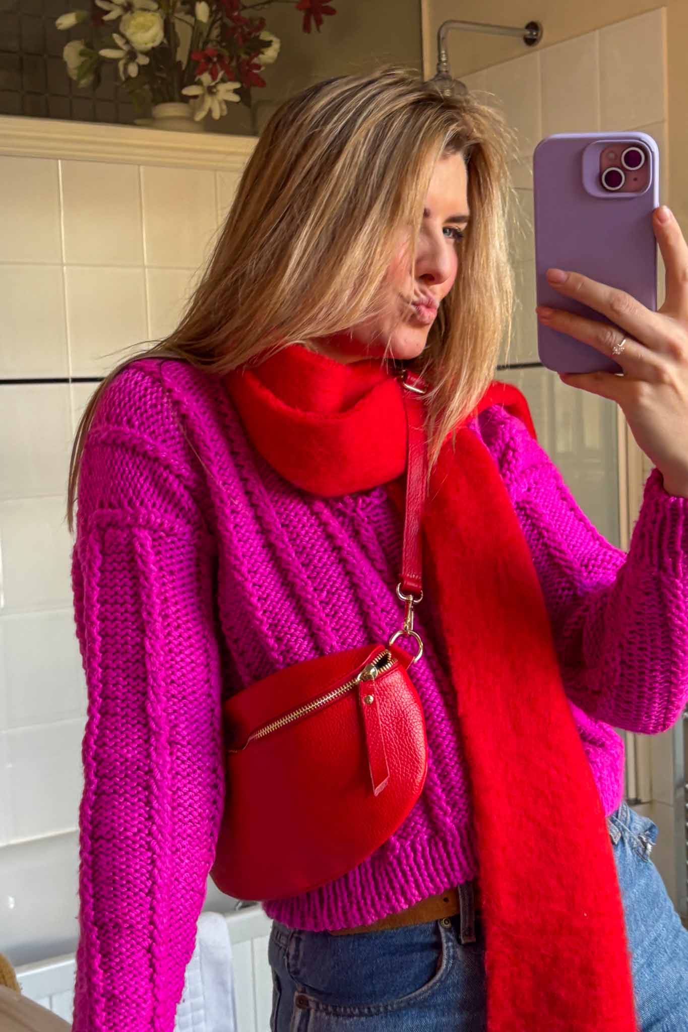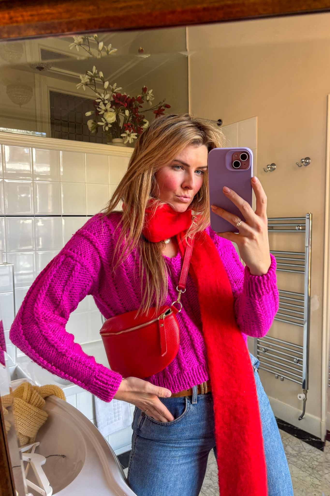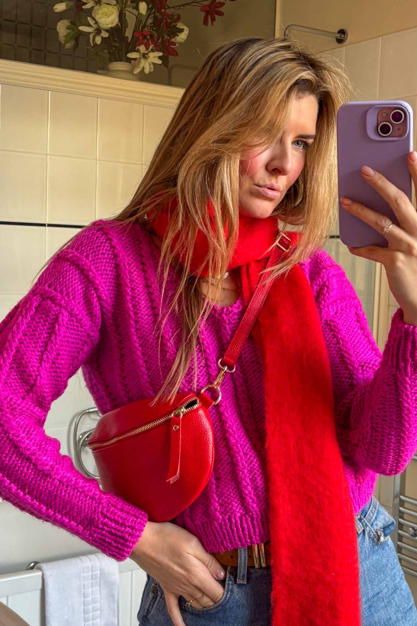 A burst of bold elegance, The Fuchsia Sunset Fine Knit Top is your statement staple for effortless chic. Hand-knitted in soft, breathable cotton, this lightweight piece features a delicate, refined texture and a vibrant fuchsia tone that catches the light beautifully. Its slightly cropped cut adds a playful silhouette, perfect to style over high-waisted trousers, flowy skirts, or layered atop a slip dress for that extra touch of color. Both timeless and daring, this artisanal knit brings a fresh energy to your wardrobe. Lovingly hand-knitted, steamed, and dry-cleaned.