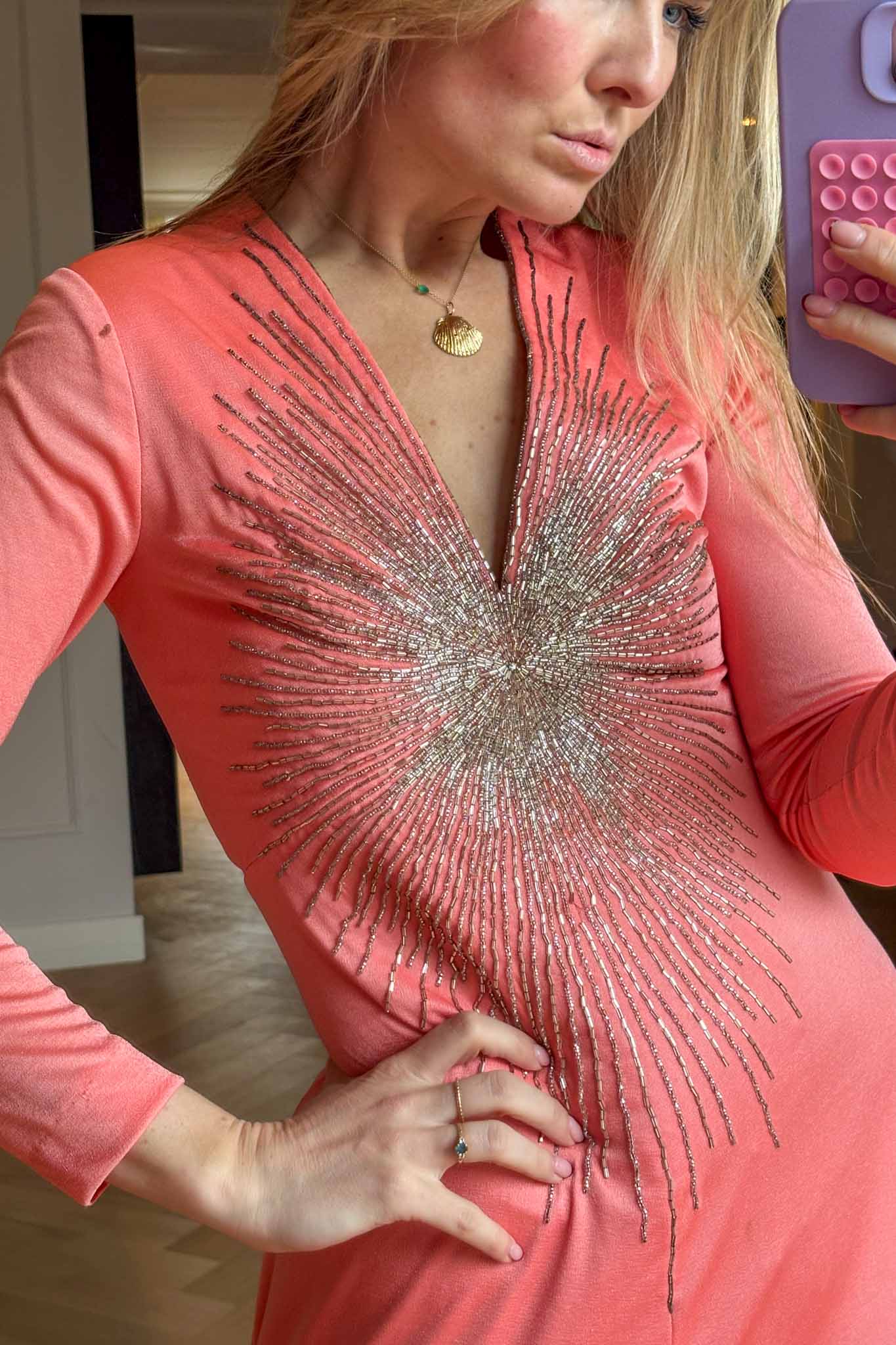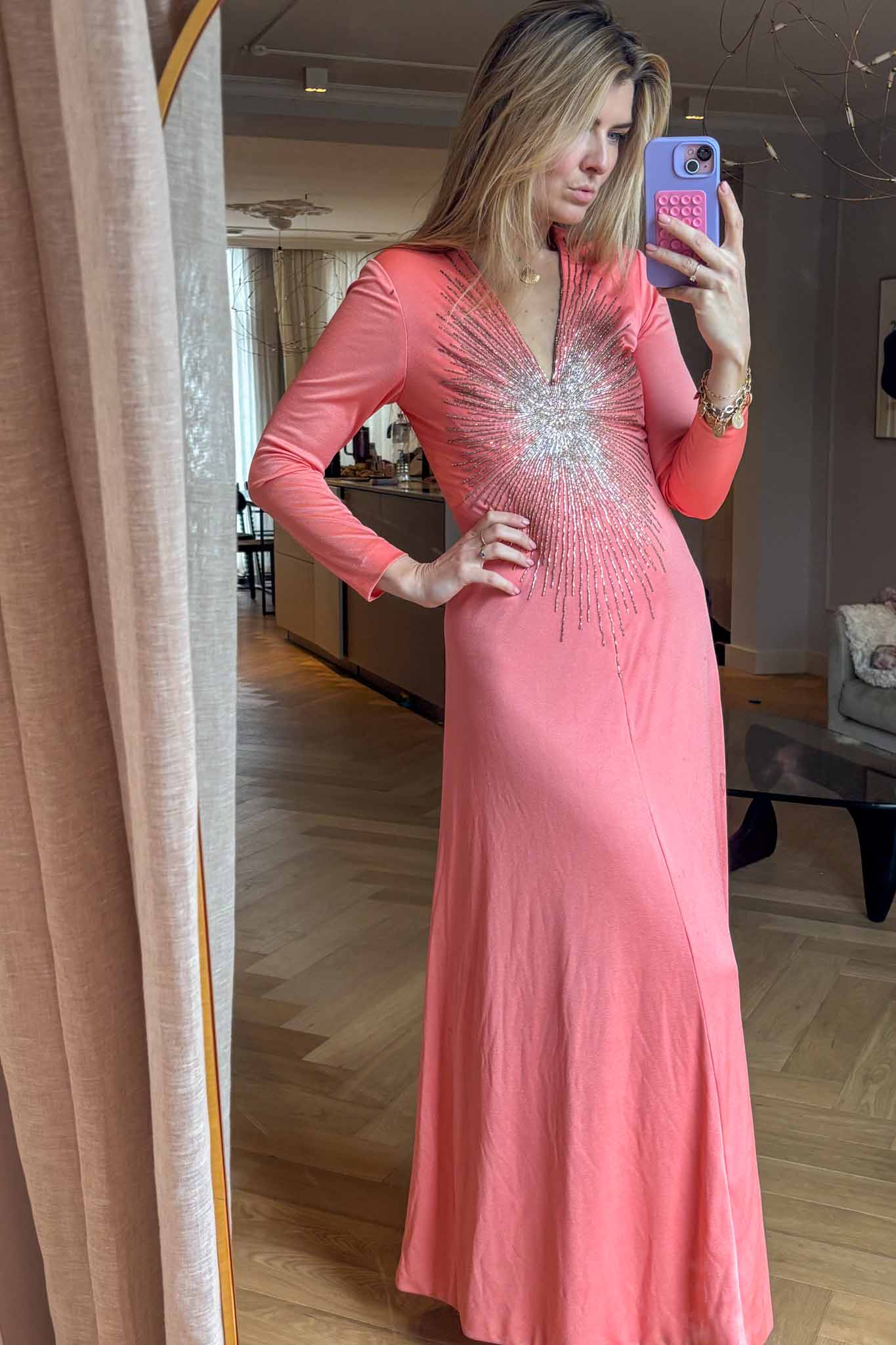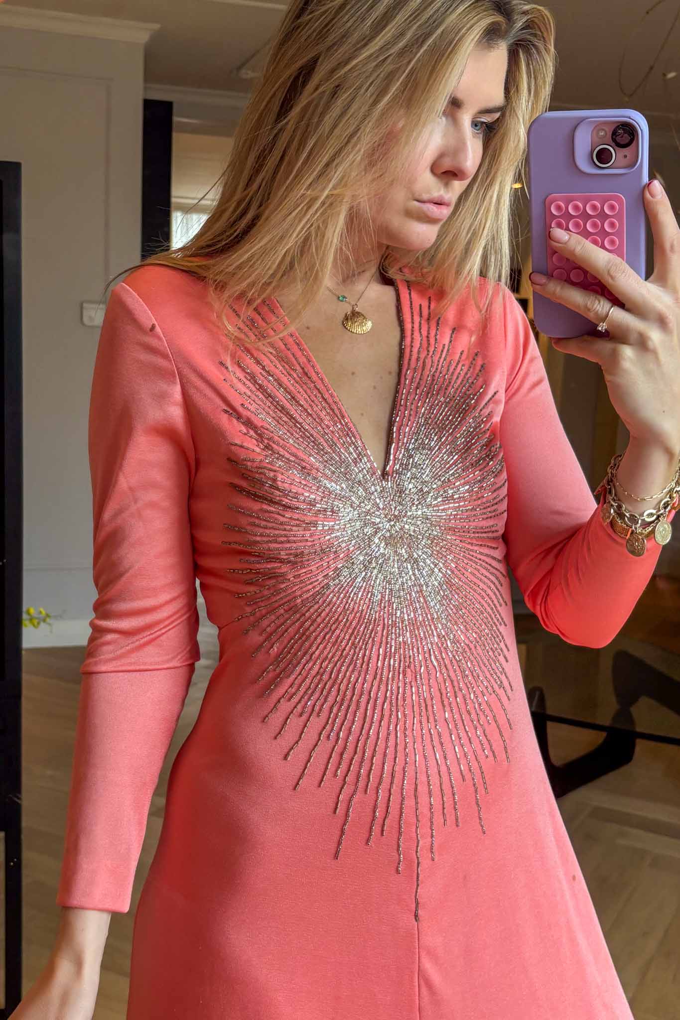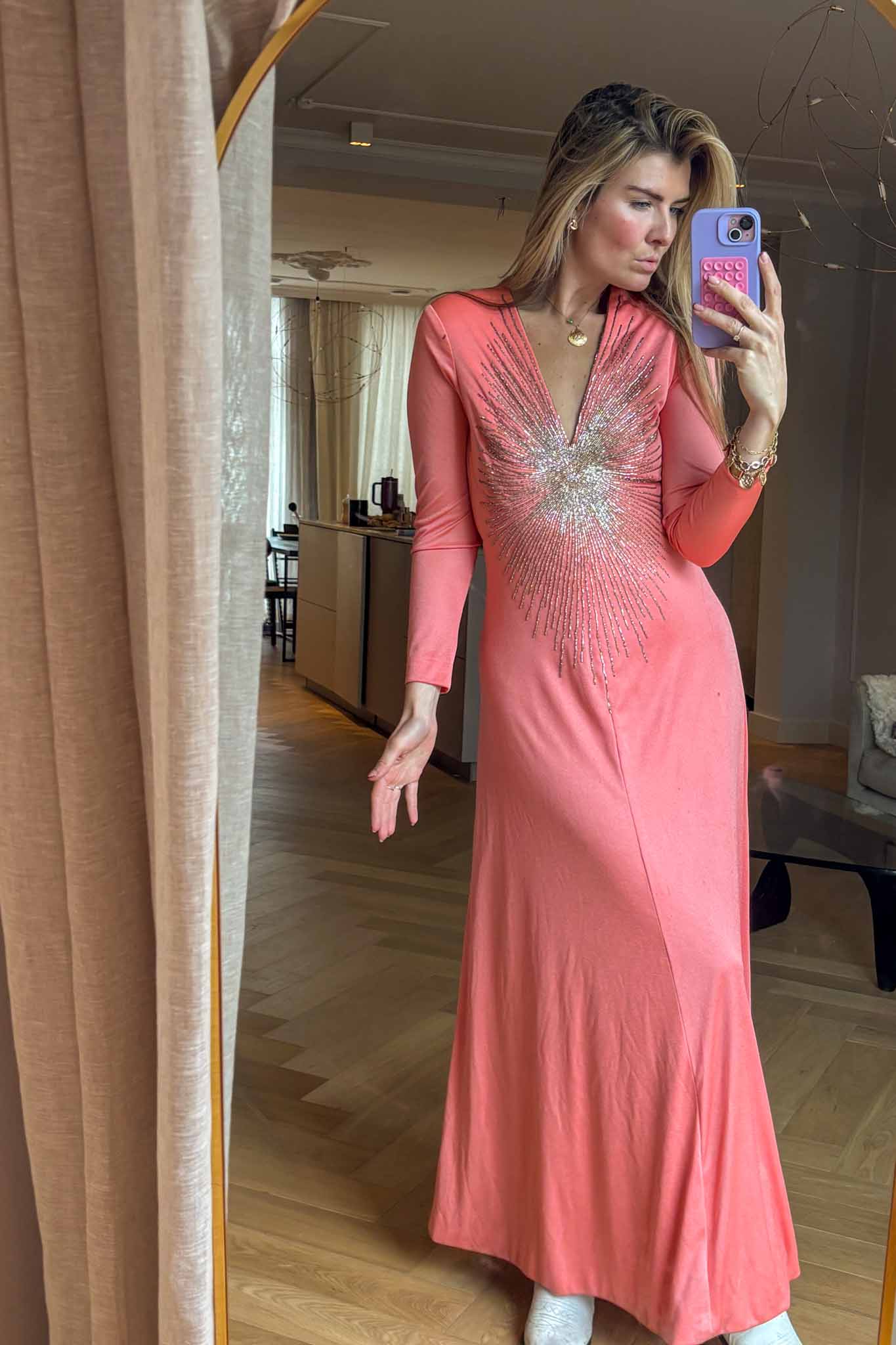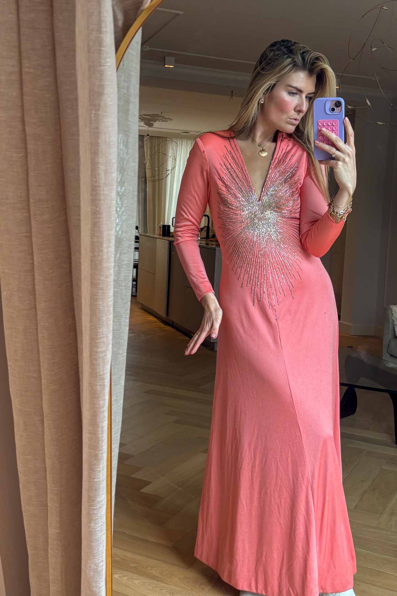 A true one-of-a-kind dress carrying authentic 70s craftsmanship and charm.